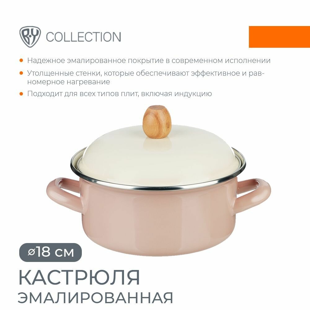 by collection кастрюля эмалированная, 18см, 1,9л, индукция, бежевый 894-512 894-512 кастрюля