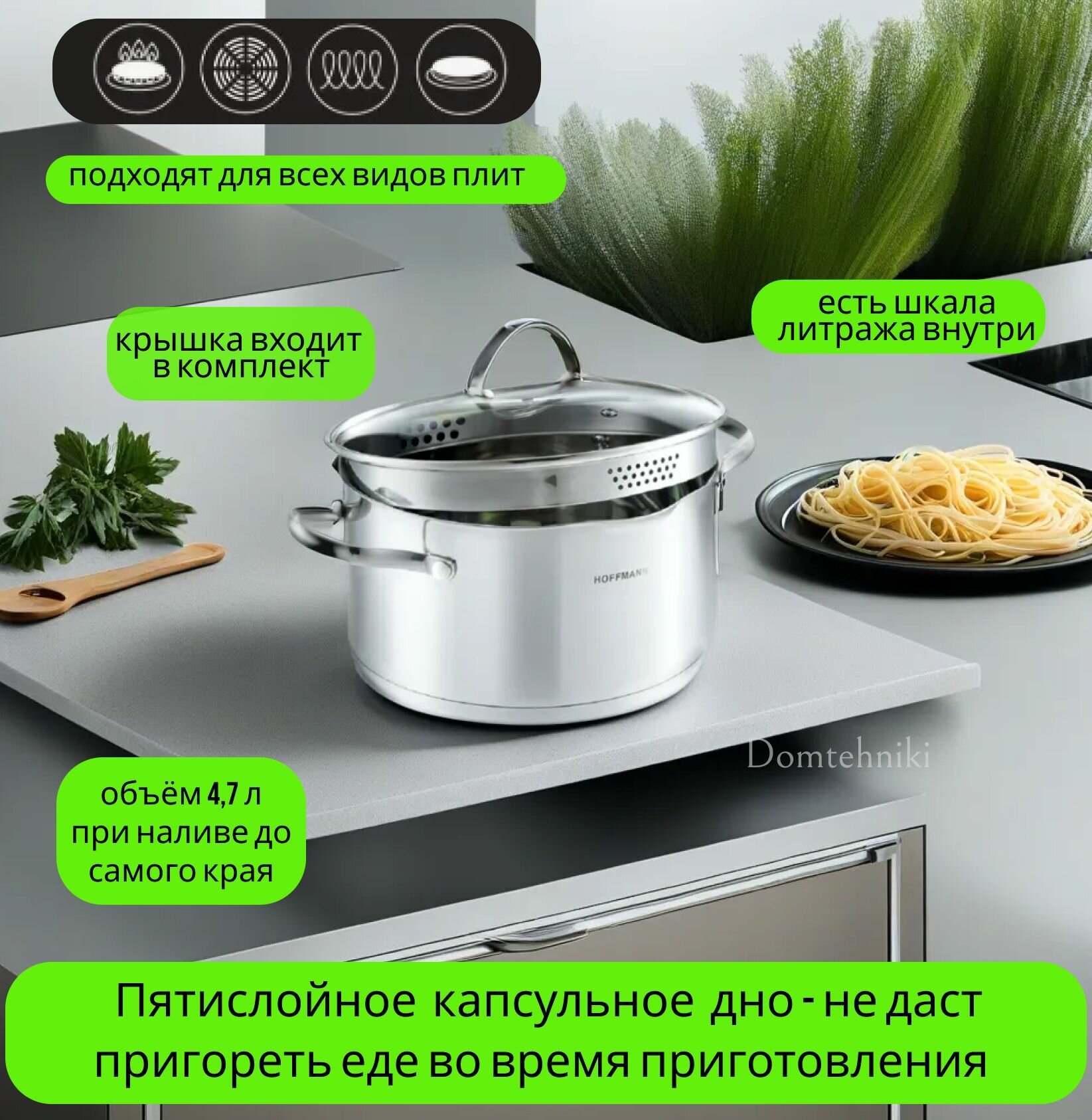 Кастрюля со сливом, Hoffmann, модель НМ5622, 4,7 л