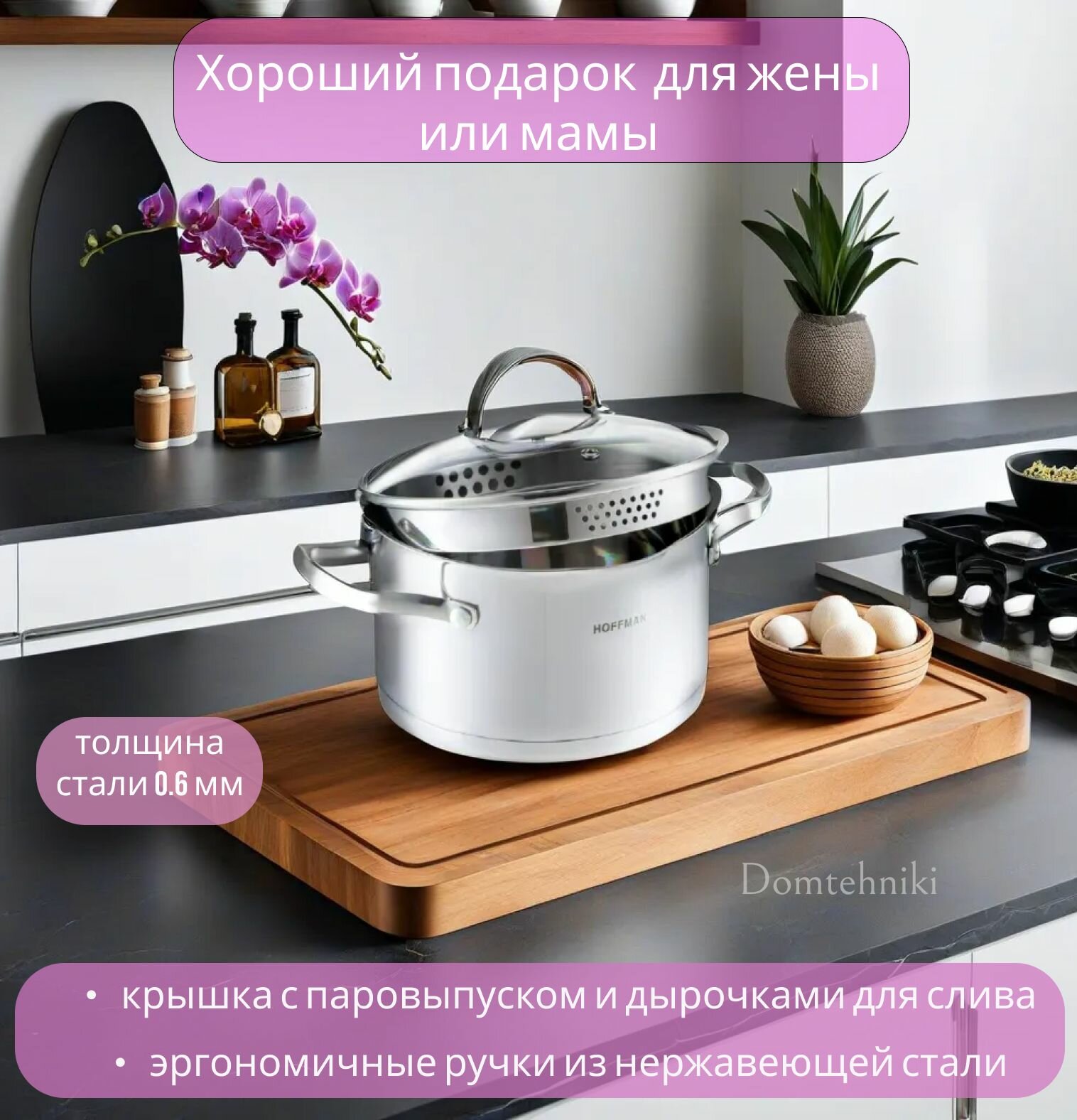 Кастрюля со сливом, Hoffmann, модель НМ5622, 4,7 л