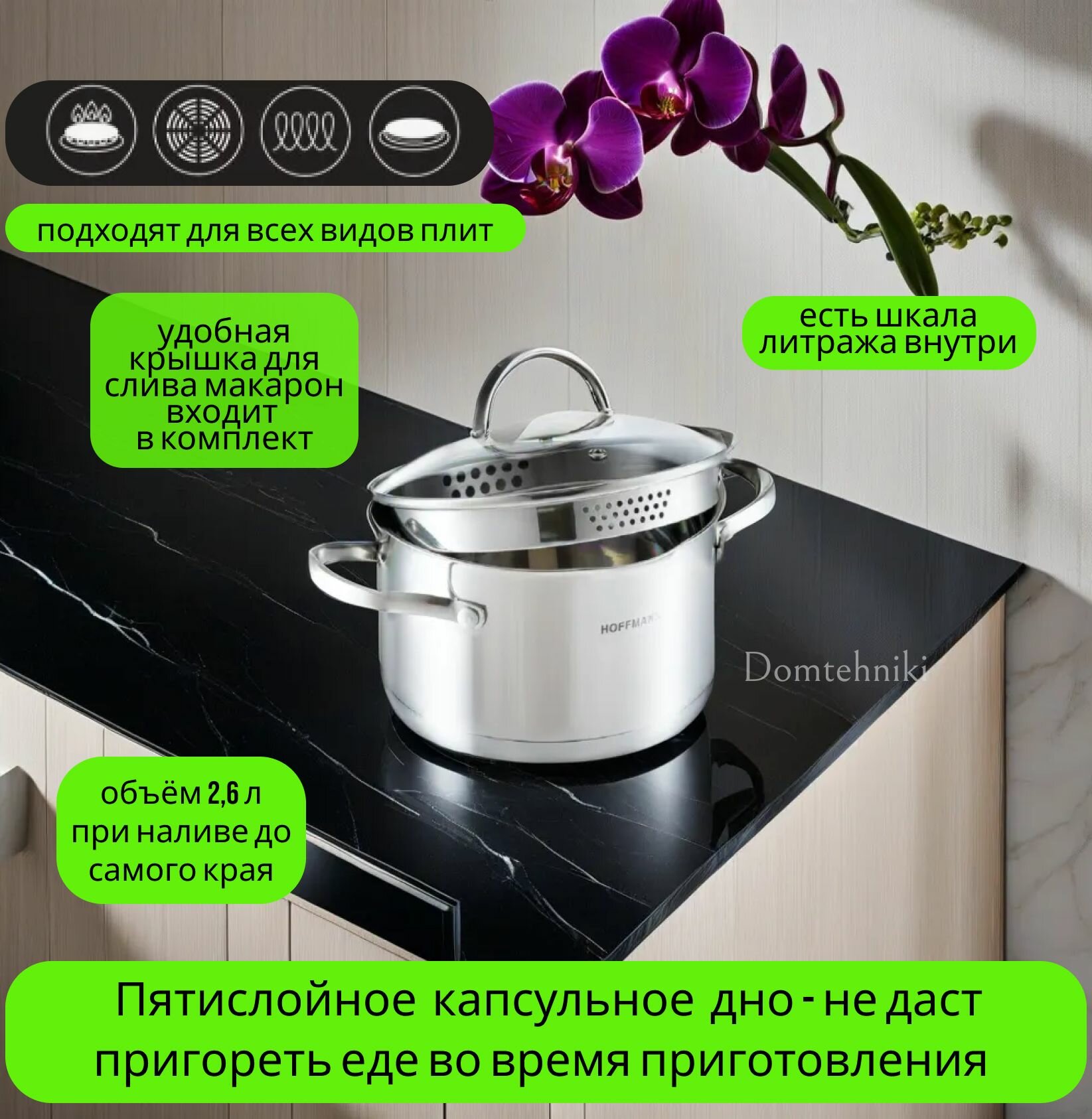 Индукционная кастрюля со сливом HOFFMANN 2.6л(18см)