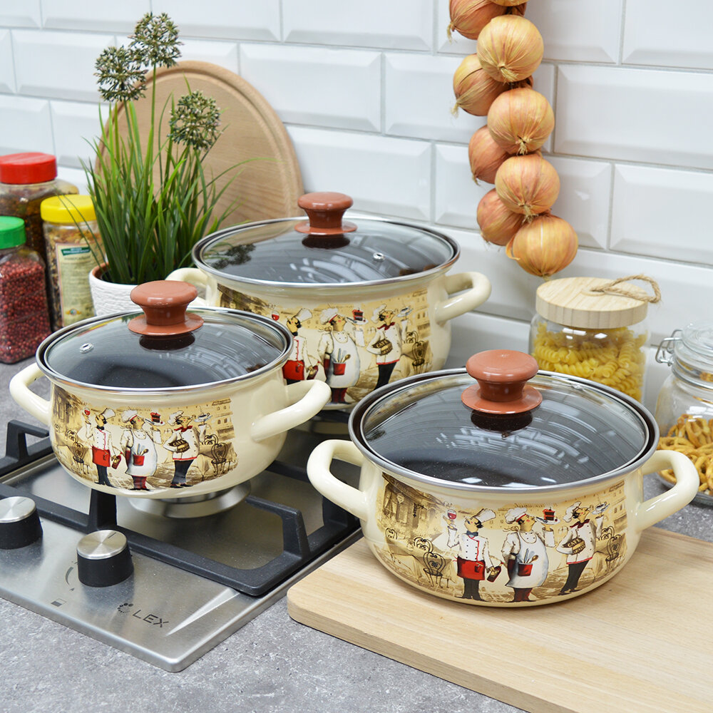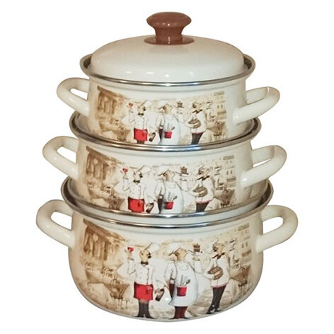 Набор посуды эмалированная сталь, 6 предметов, кастрюли 1.5,2,3 л, МП, Керченский металлургический завод, Сомелье-Экстра