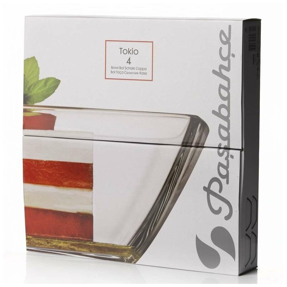 Салатник стекло, прямоугольный, 4 шт, 16х16 см, Tokyo, Pasabahce, 53066B/4