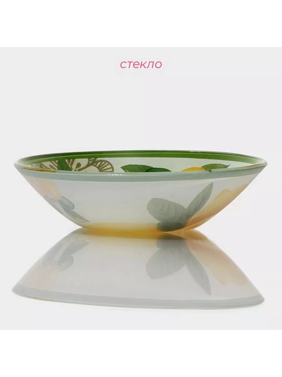 Салатник стеклянный Доляна "Романтичный киви", 920 мл, 22*5 см