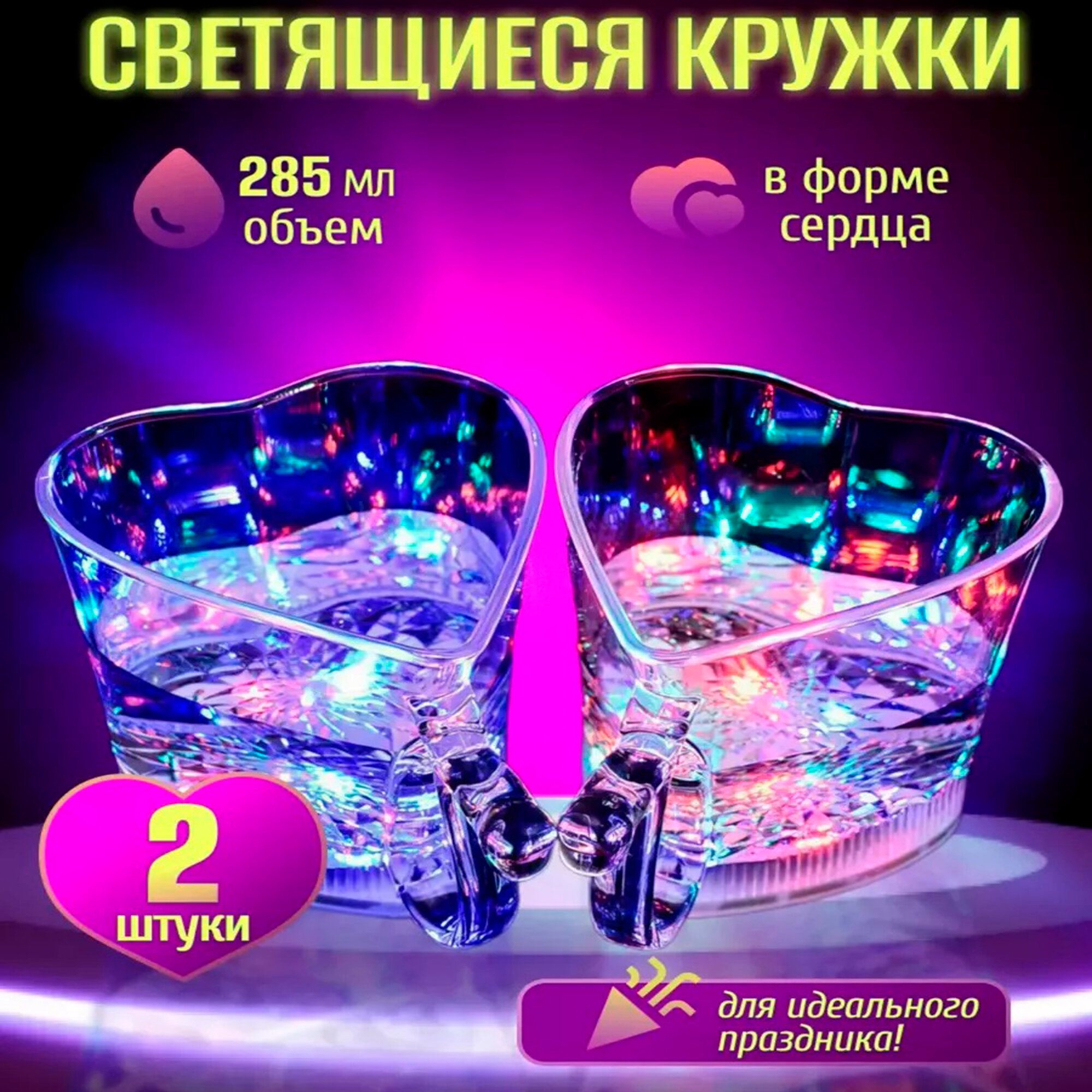 Светящийся стакан Сердце набор 2 шт. подарок интересное: