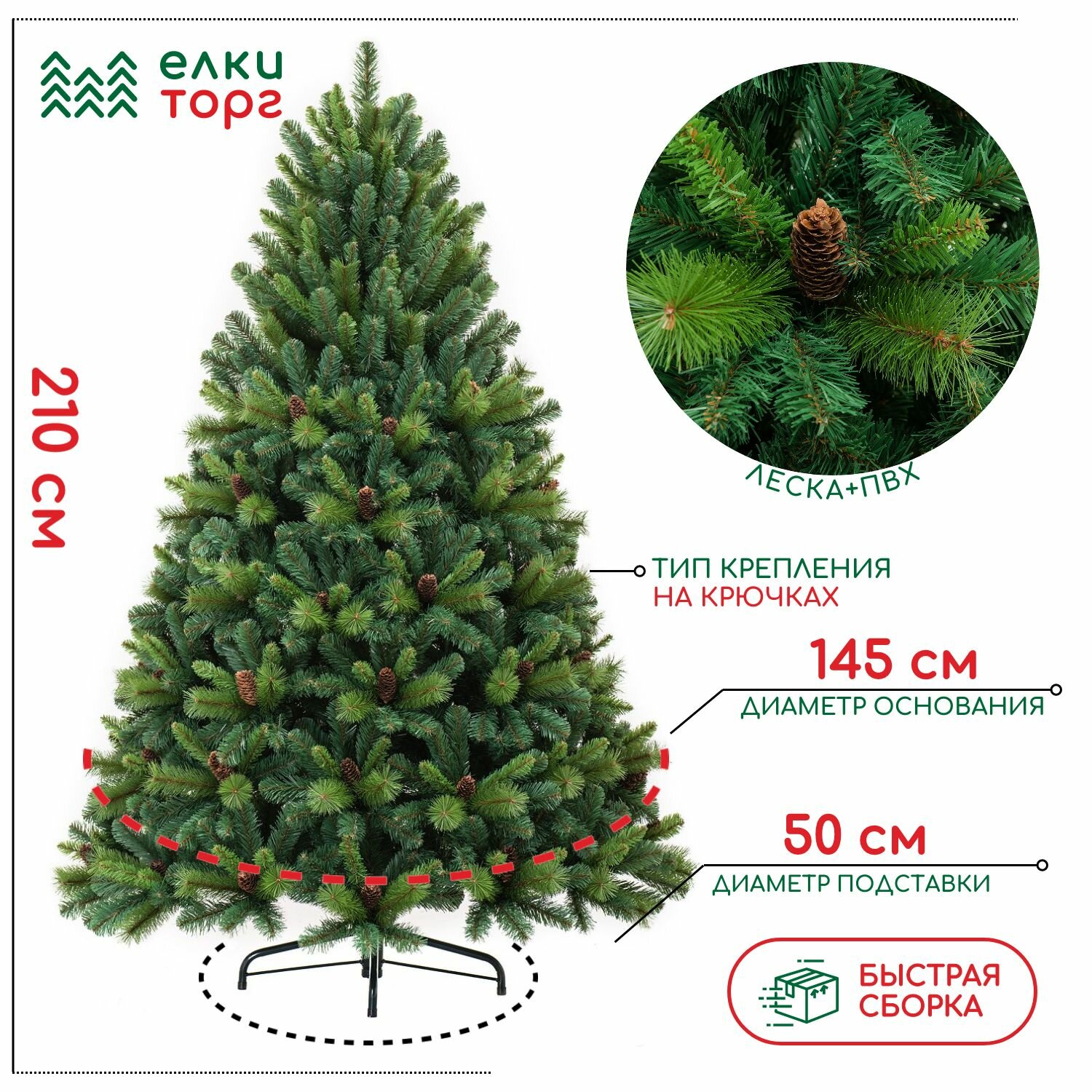 Елка новогодняя напольная, 210 см, Байкальская, сосна, зеленая, хвоя леска, с шишками, 97210, ЕлкиТорг