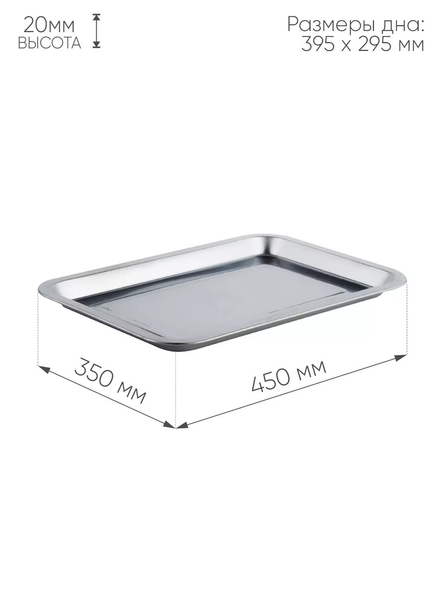 Поднос противень 49.5 х 34.5 х 2 см, нержавеющая сталь