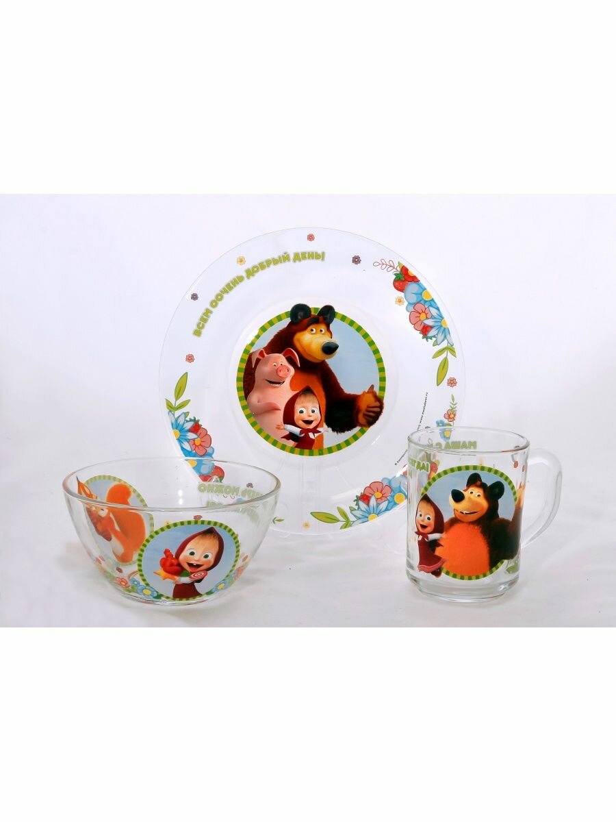 Купить Набор Стекло 3ПР Маша И Медведь Добрый День круж-250млтар-195см Сал-13см 12 МФК ММН3-1 .