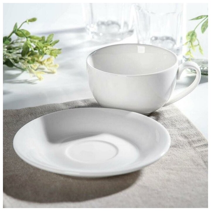 Чайная пара фарфоровая Wilmax Olivia, 2 предмета: чашка 250 мл, блюдце d=15 см, цвет белый интересное: