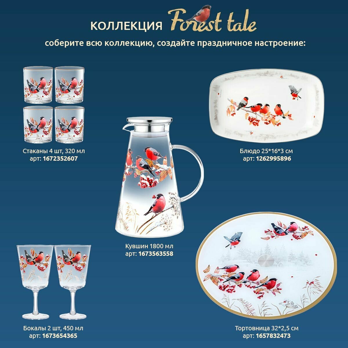 Купить Чайный набор Lefard "Лесная сказка. Снегири" на 2 персоны 4 предмета