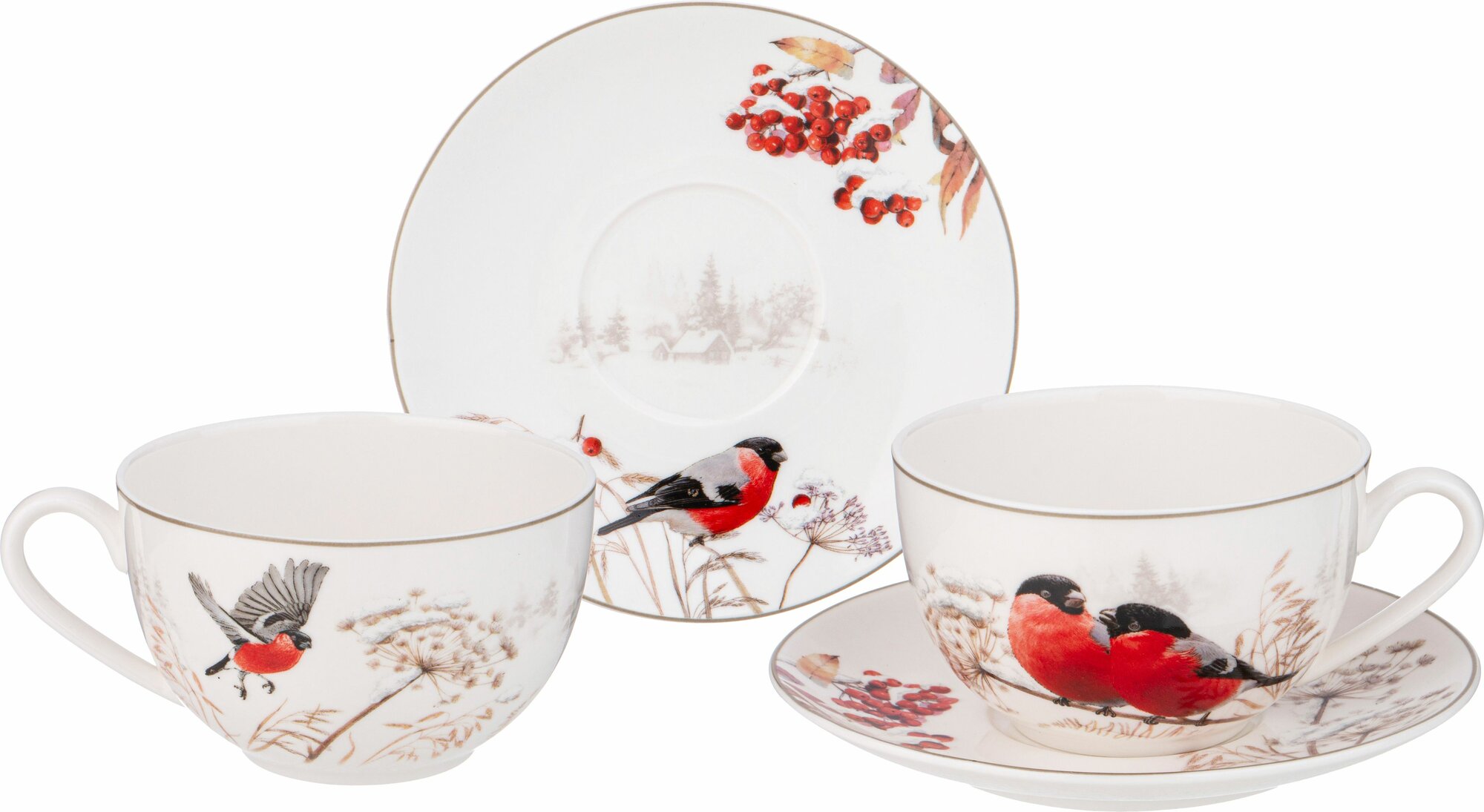Чайная пара фарфоровая Lefard "Лесная сказка. Снегири" 250 мл