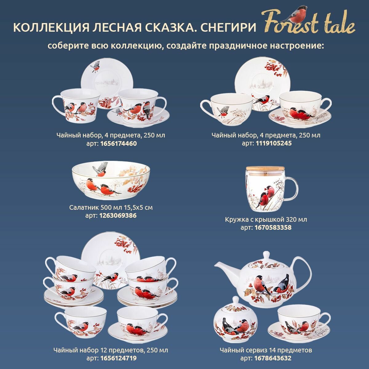Чайный набор Lefard "Лесная сказка. Снегири" на 2 персоны 4 предмета