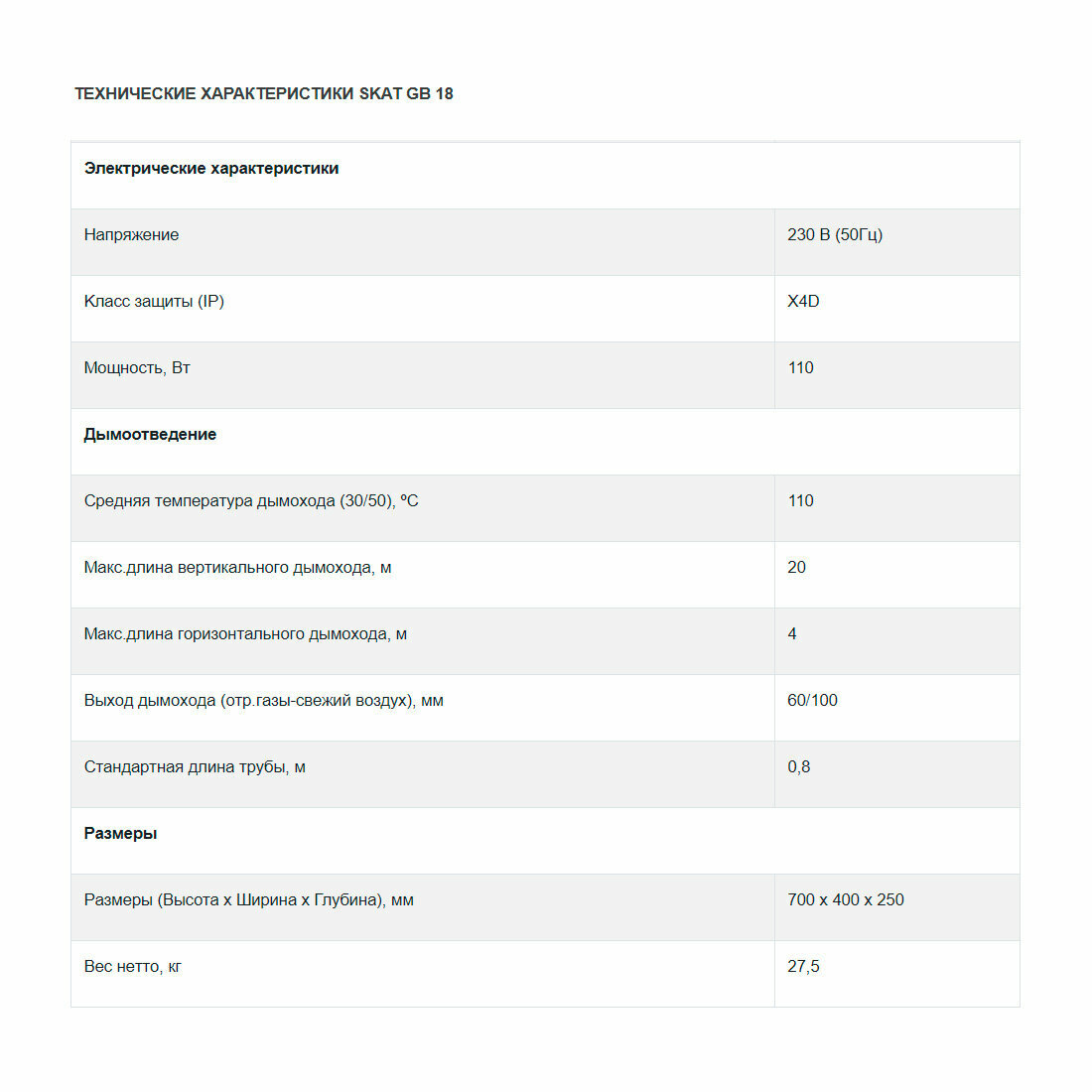| Диаметр коаксиального дымохода | 60/100 мм |
