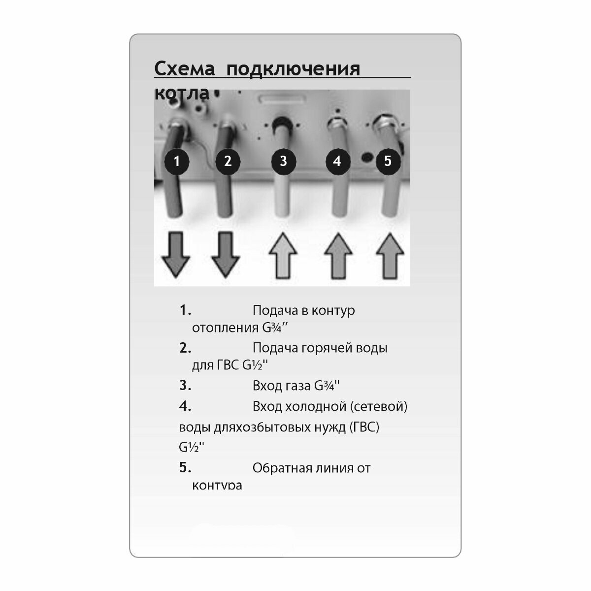 | Патрубок подключения контура отопления | 3/4" |