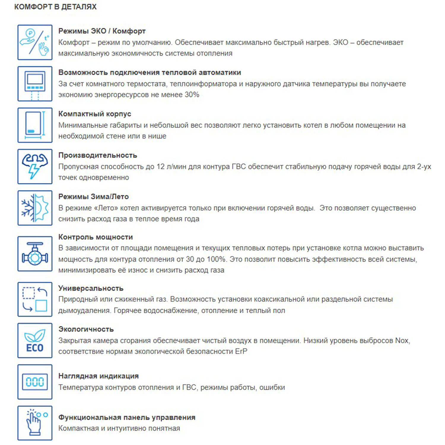 | Температура в контуре ГВС | 30 - 65 °С |