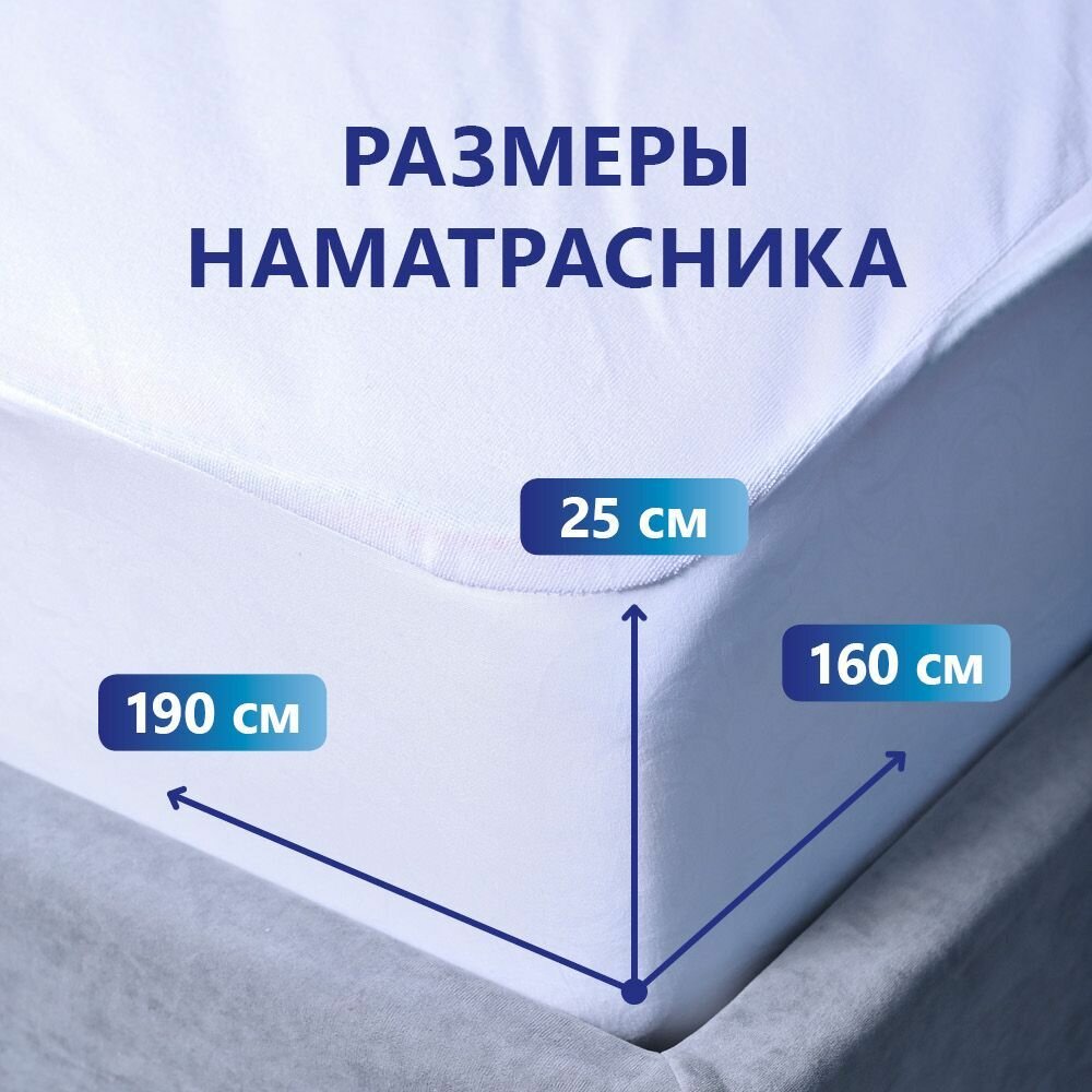 Наматрасник 160х190см, защитный водонепроницаемый Мулетон-Аквастоп, с бортом м/ф 25 см. Чехол на матрас натяжной, махровый, с резинкой по всему периметру