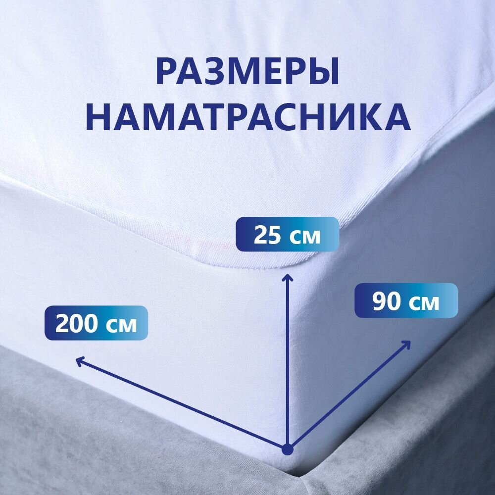 Наматрасник 90х190см, защитный водонепроницаемый Мулетон-Аквастоп с бортом м/ф 25 см. Чехол на матрас натяжной, махровый, с резинкой по периметру
