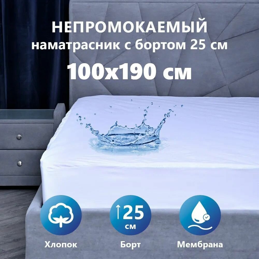 Купить Наматрасник 100х190см защитный водонепроницаемый Мулетон-Аквастоп, с бортом м/ф 25см. Чехол на матрас натяжной, непромокаемый, с резинкой по всему периметру.