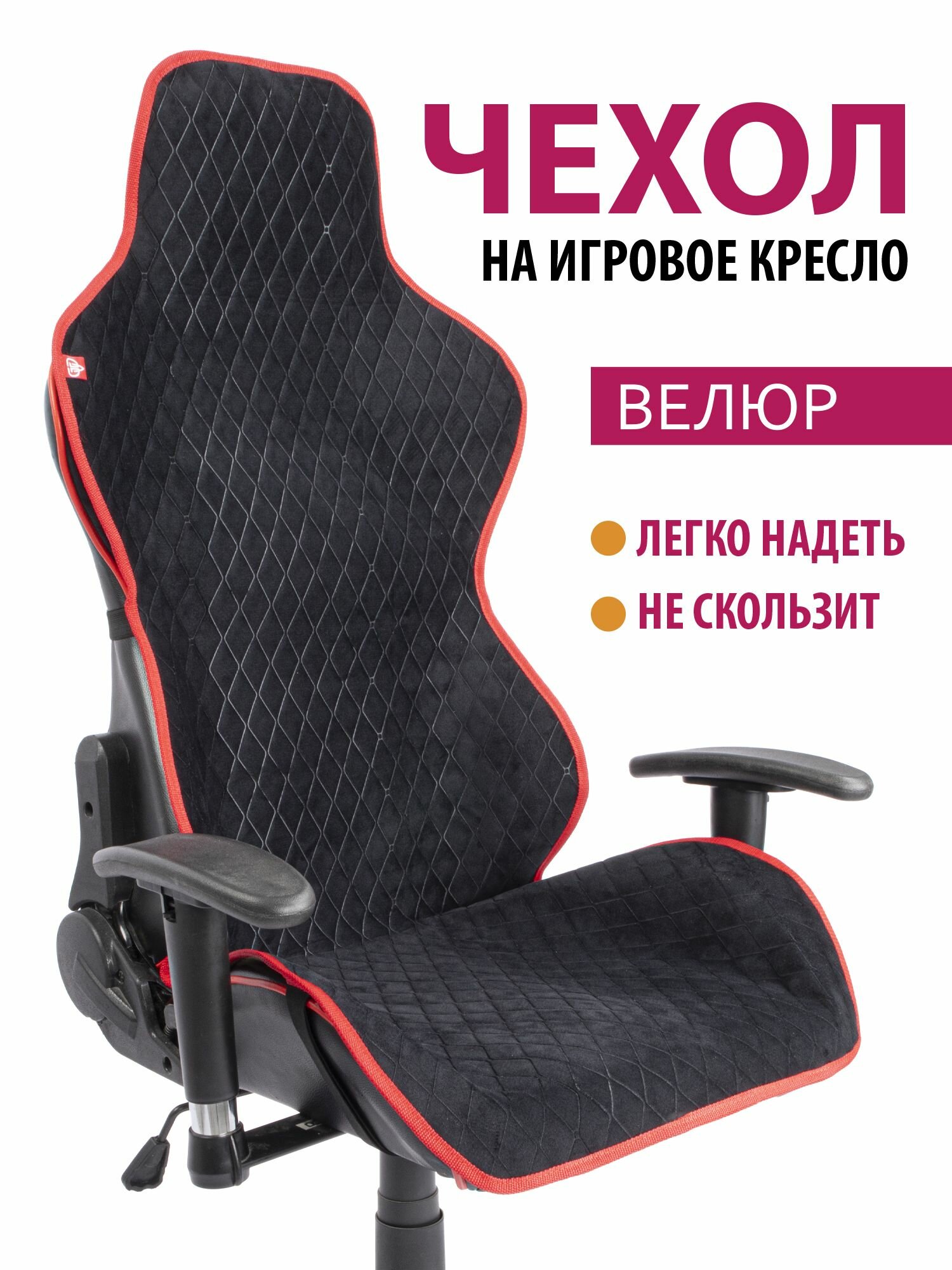 Чехол (накидка) для компьютерного игрового кресла Ромб черный с красным кантом интересное:
