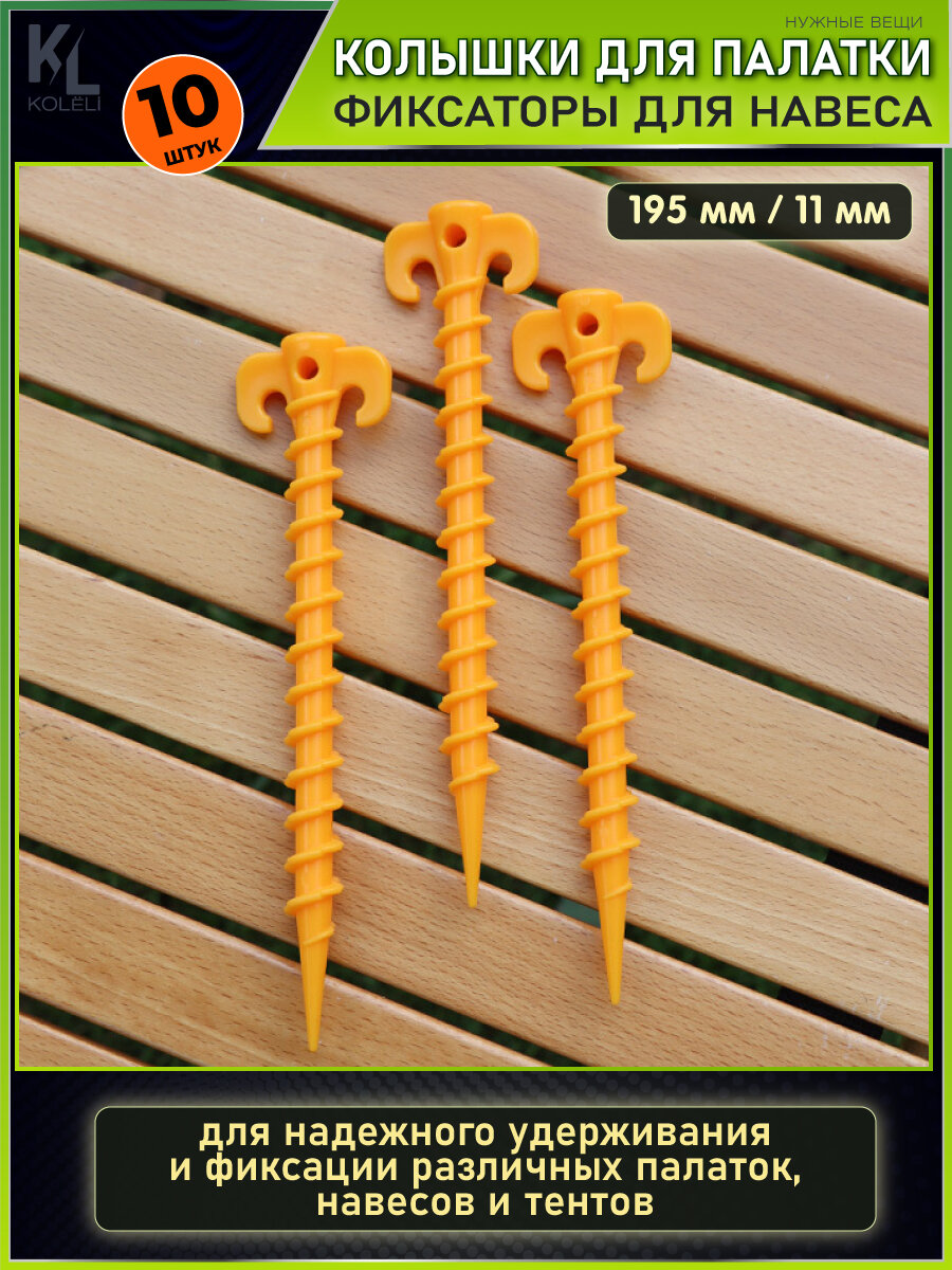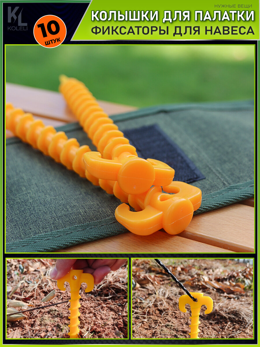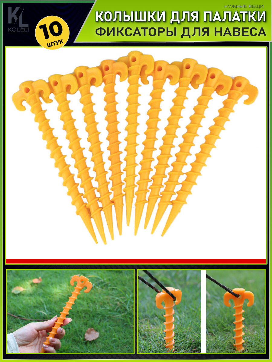 KoLeli / Колышки фиксаторы для палатки и тента, ввинчивающиеся, 10 шт, желтые интересное: