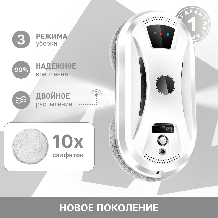 Робот-мойщик для окон Rechoiz, с двойным распылением, 10 салфеток, 3 режима, цвет белый интересное: