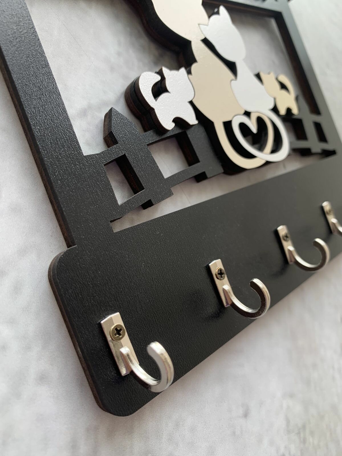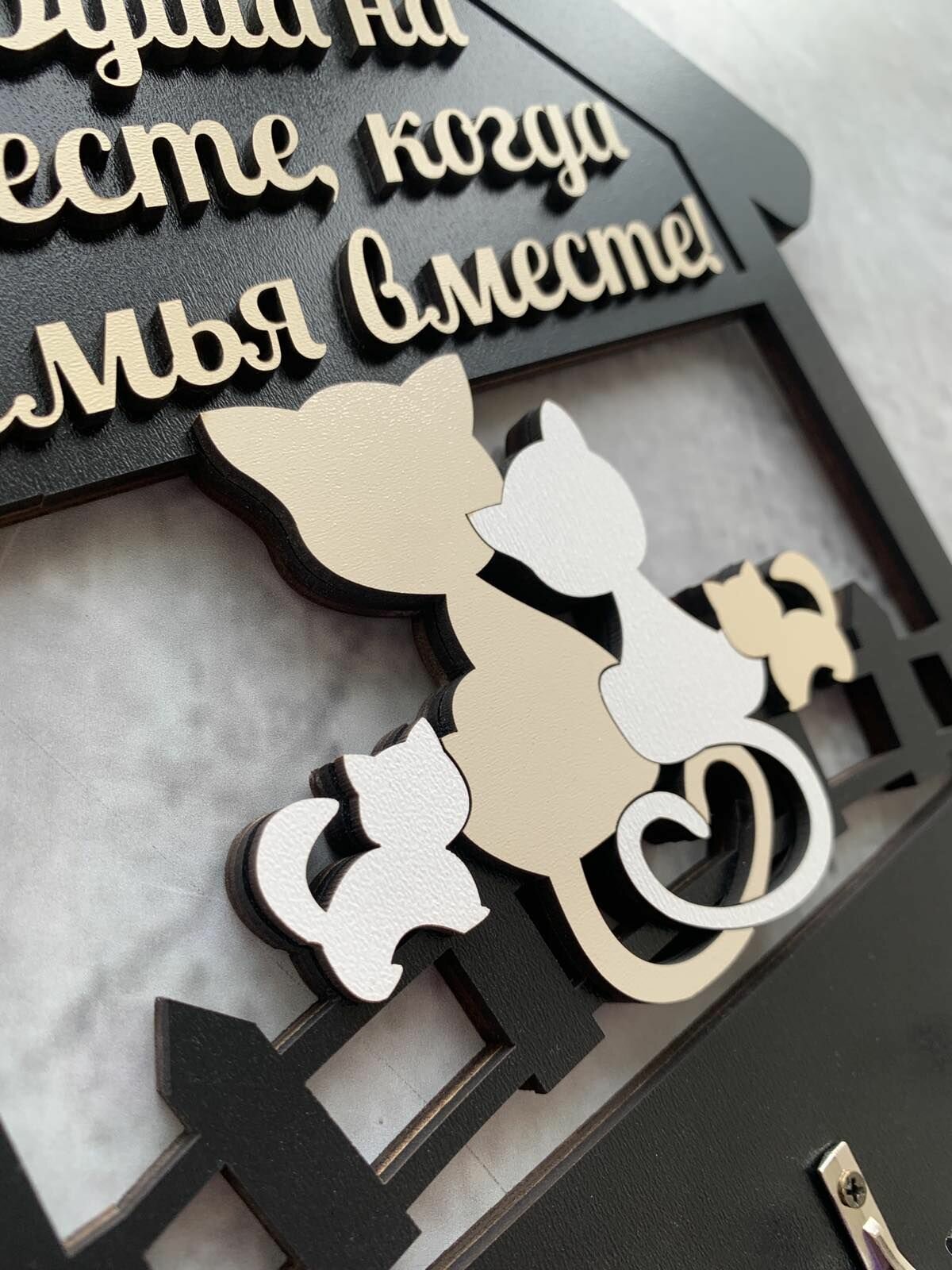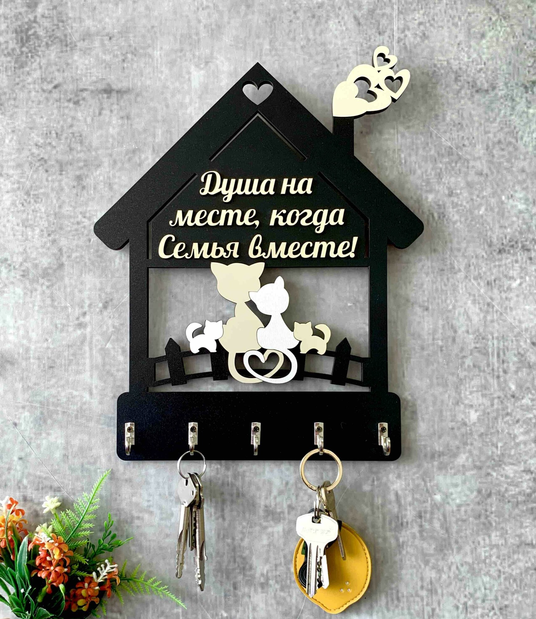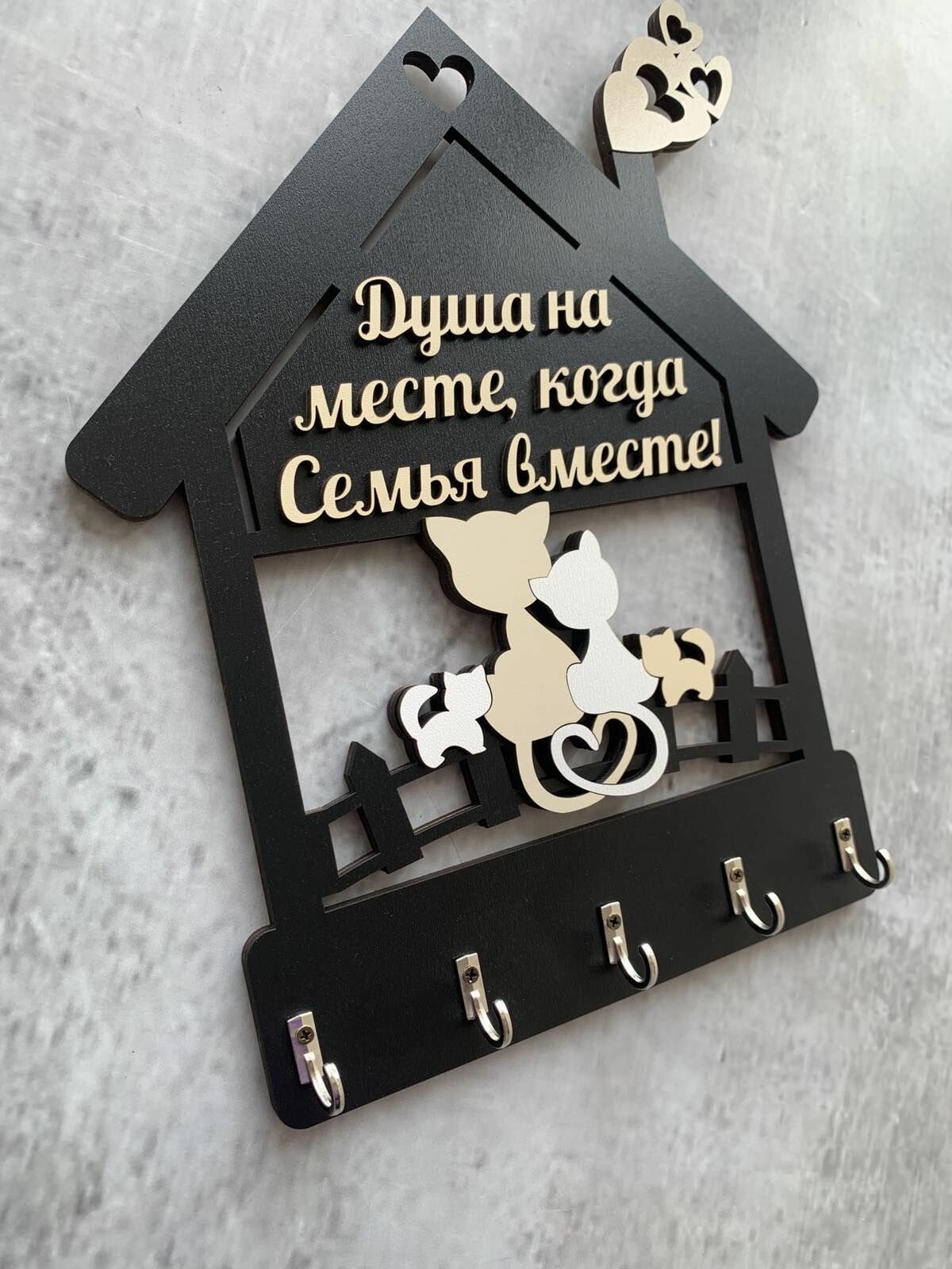 Ключница настенная "Домик с котятами" черная Home Decor интересное: