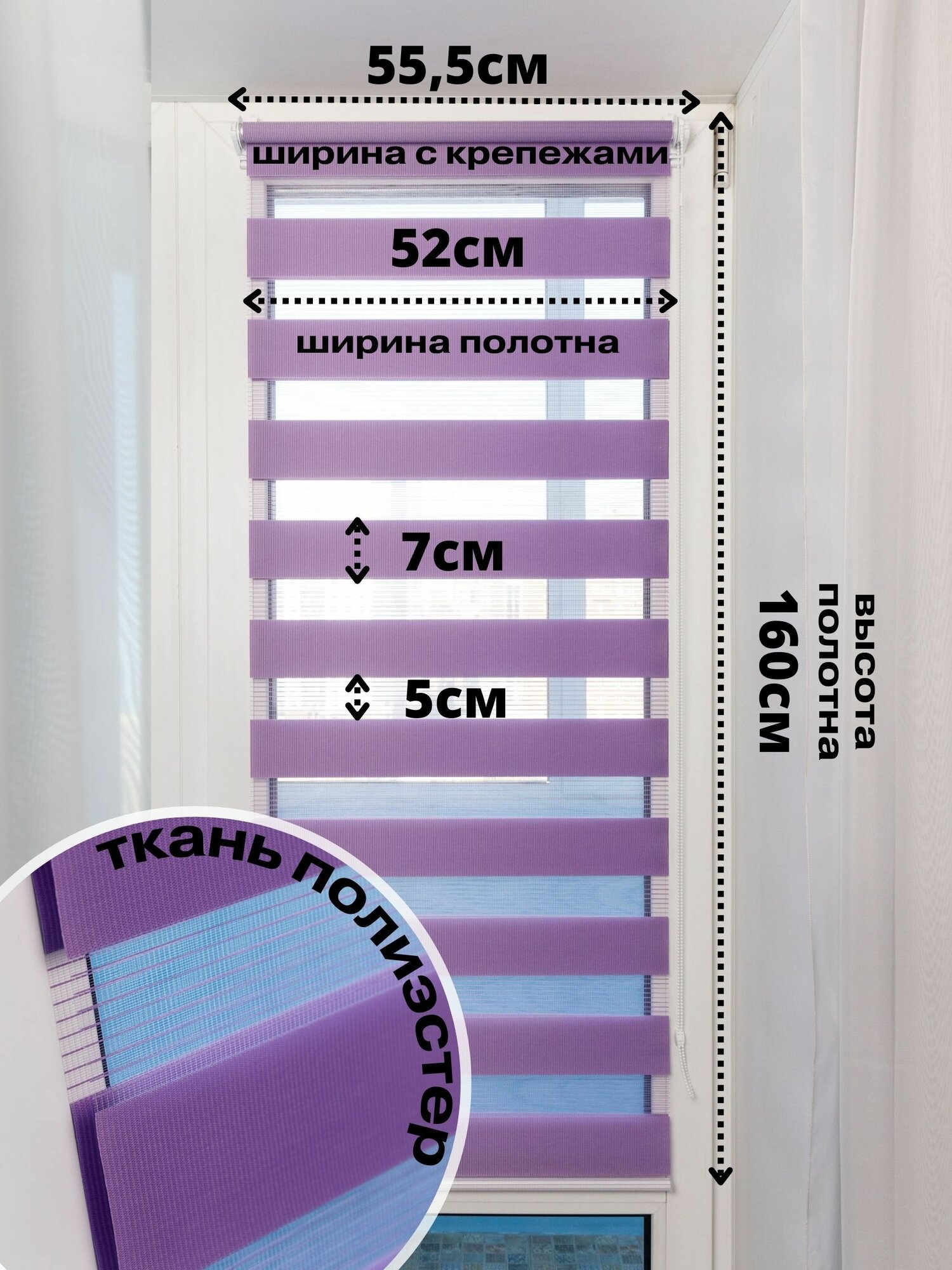 СохранитьРулонные шторы день ночь ширина 52см, высота 160 см сиреневые жалюзи на окна Зебра для кухни, спальни, детской, на балкон интересное: