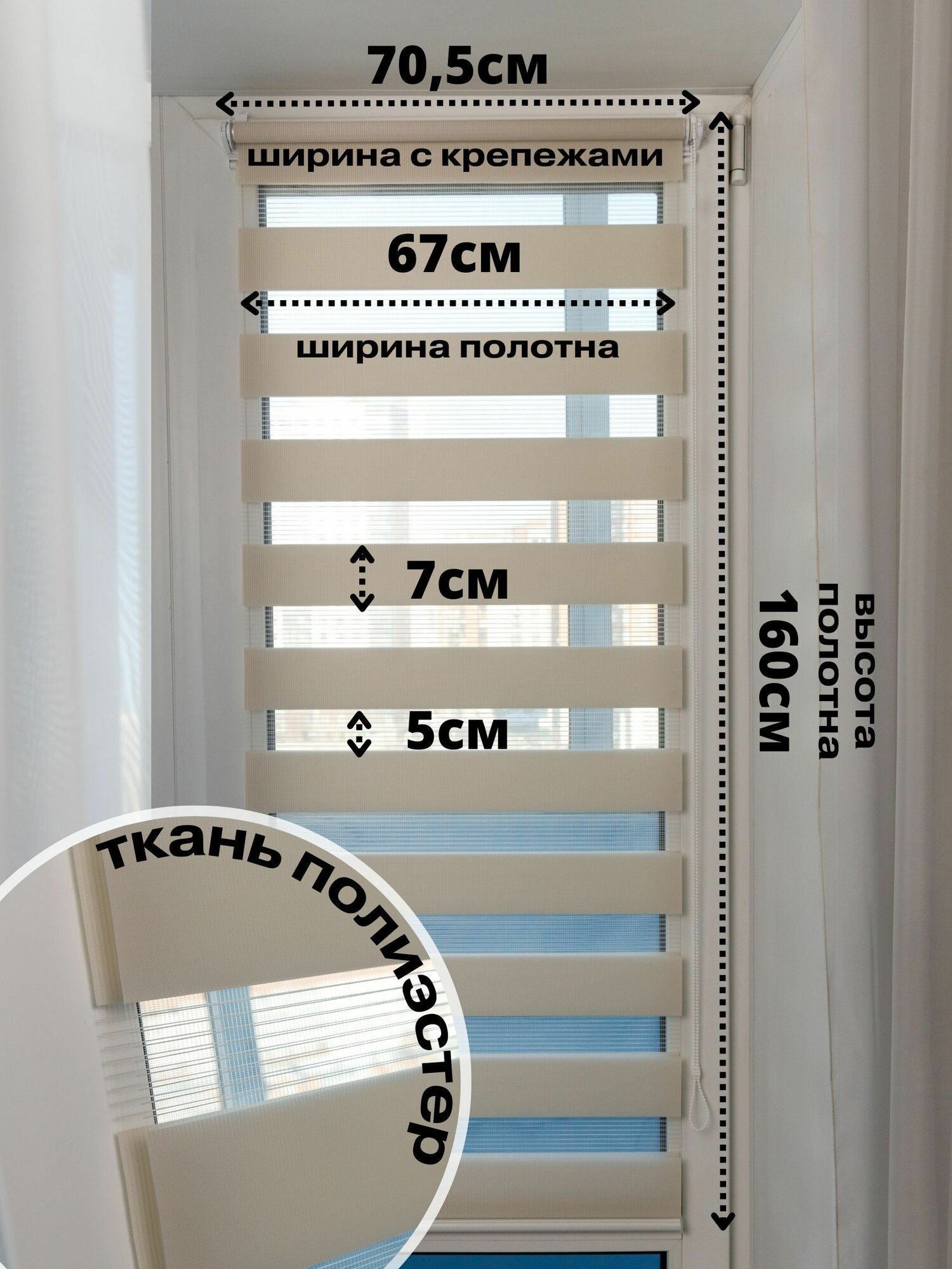 СохранитьРулонные шторы день ночь ширина 67см, высота 160 см бежевые жалюзи на окна Зебра для кухни, спальни, детской, на балкон интересное: