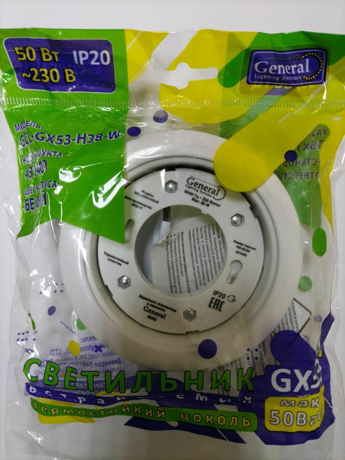 | Тип цоколя | GX53 |