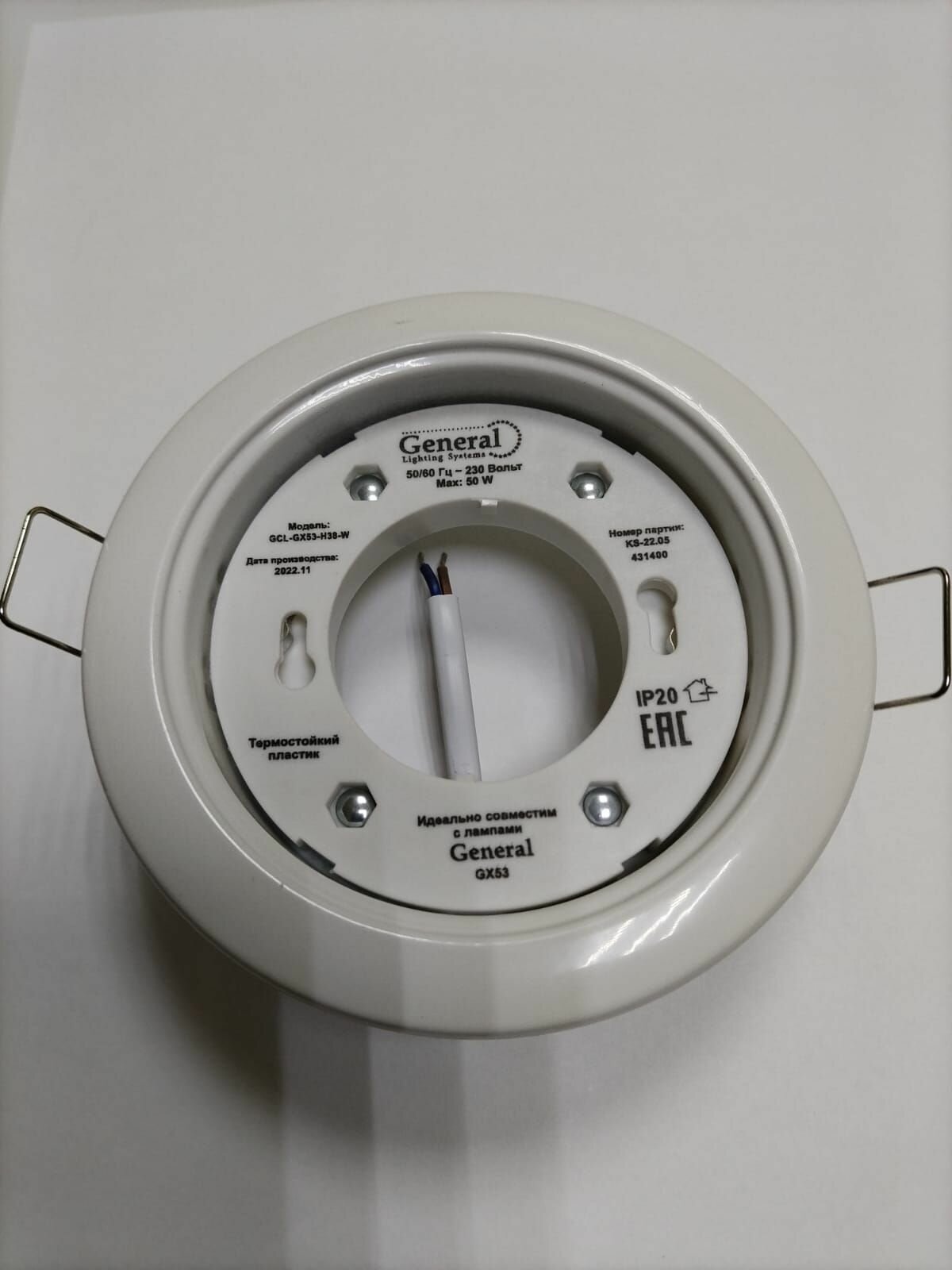 Встраиваемый светильник GENERAL 431400 GCL GX53 Ø90 мм, белый