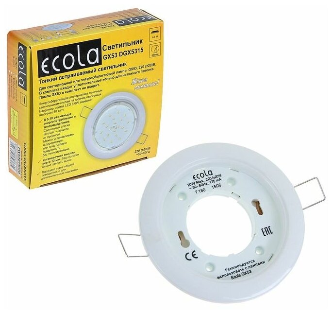 Светильник Ecola DGX5315, GX53, 20Вт, белый, пластик