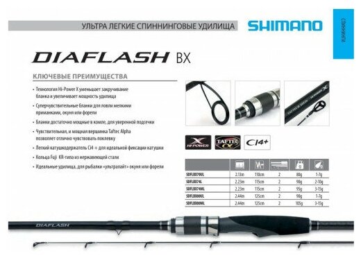 Спиннинг Shimano Diaflash BX 7\'4 ML 224 см. 3-15 гр. интересное: