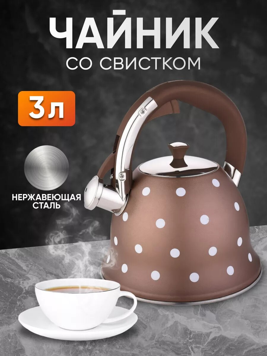 Чайник для плиты со свистком 3 л металлический коричневый