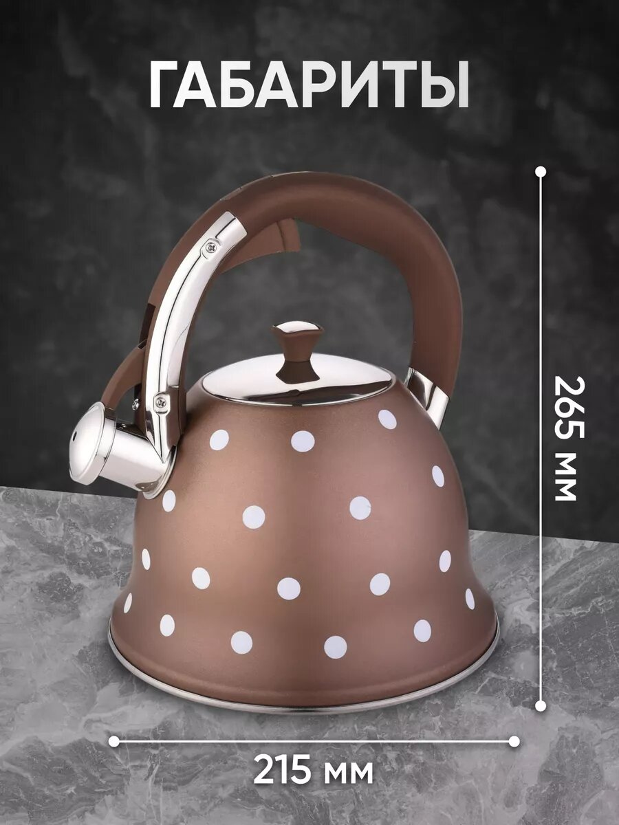 СохранитьЧайник металлический для плиты Kelli со свистком, 3 литра, коричневый интересное: