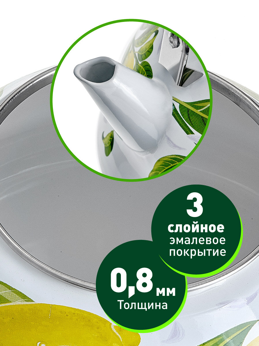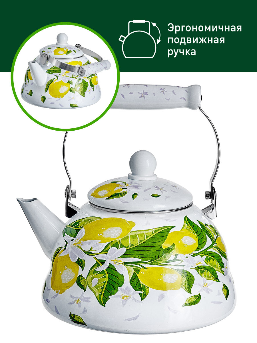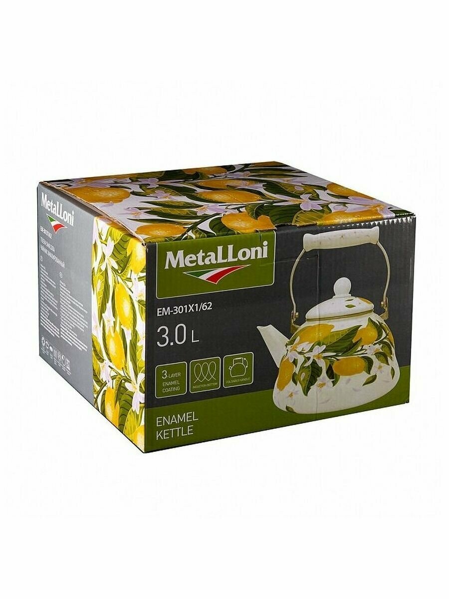 Чайник для плиты Metalloni EM-301X1/62 "Лимоны" эмалированный, с керамической ручкой, 3 л
