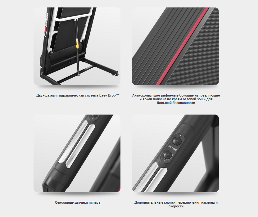 | Плюсы: | Хорошая дорожка, несложно собирается одним человеком. Складывается и раскладывается практически без усилий, хрупкая женщина легко справится. Тихая, хорошо амортизирует (сразу же купили специальный коврик, потому что не уверены были, насколько она воздействует на пол, в принципе можно не брать). Длины полотна с небольшим запасом хватает для мужчины ростом 182. А вот ширина как раз, если была бы меньше хоть на пару см, было бы не очень удобно, как мне кажется. В целом, выглядит надежно. Двигатель сильный. В сложенном виде занимает примерно 0,5 м2 |