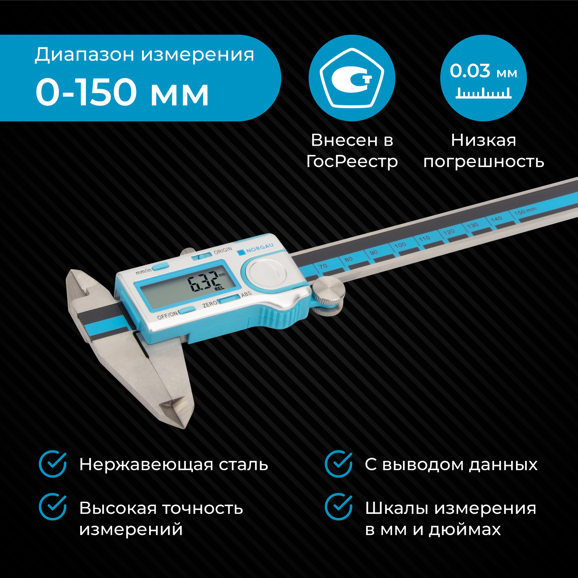Штангенциркуль цифровой NORGAU Industrial 0-150 мм, с функцией ABS Госреестр