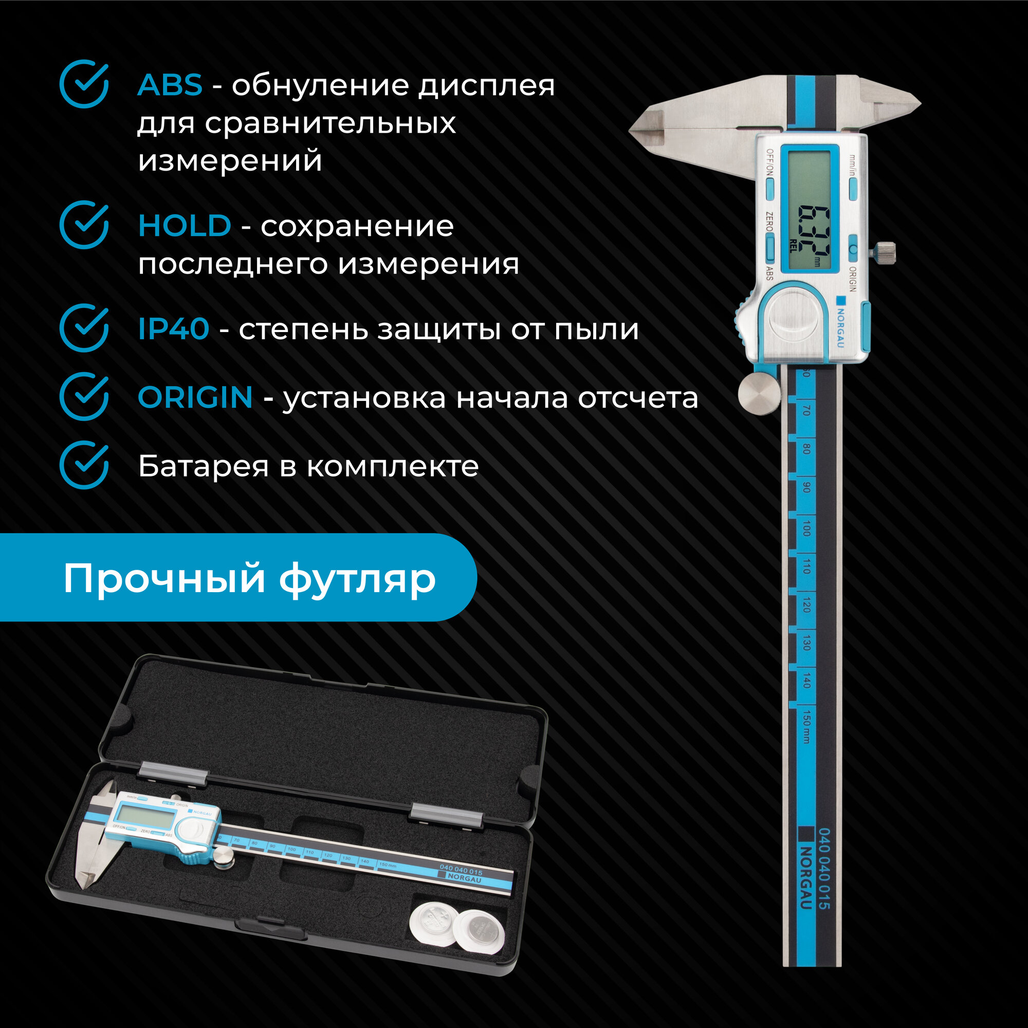 Штангенциркуль цифровой ABS NORGAU Industrial 0-150 мм, Госреестр