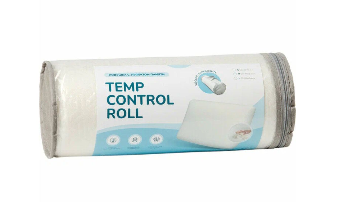 Подушка ортопедическая для сна с эффектом памяти Temp Control Roll L 2.0 60х40 см, высота 14 см интересное: