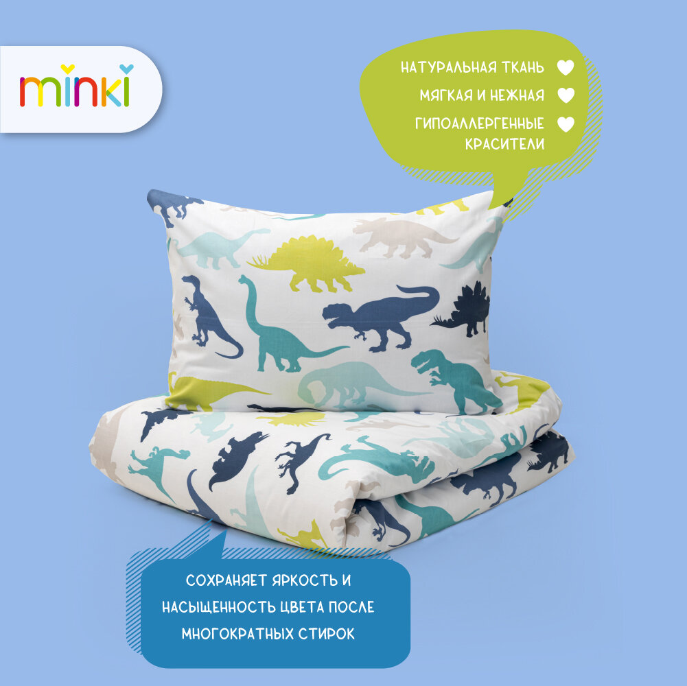 Купить Постельное белье для детей Minki, 1,5-спальное, Перкаль, 50х70, Дино