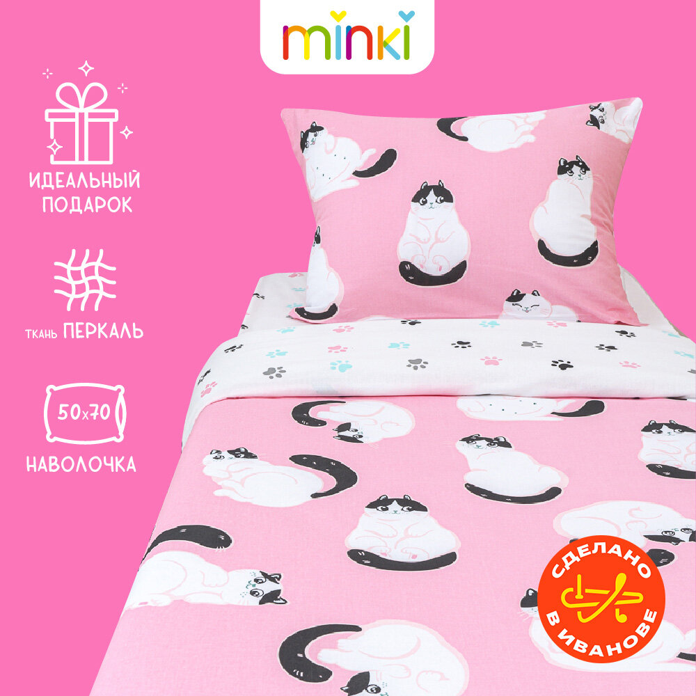 Постельное белье для детей Minki, 1,5-спальное, Перкаль, 50х70, Китти