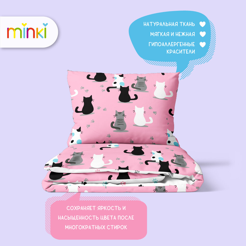 Постельное белье для детей Minki, 1,5-спальное, Перкаль, 50х70, Китти