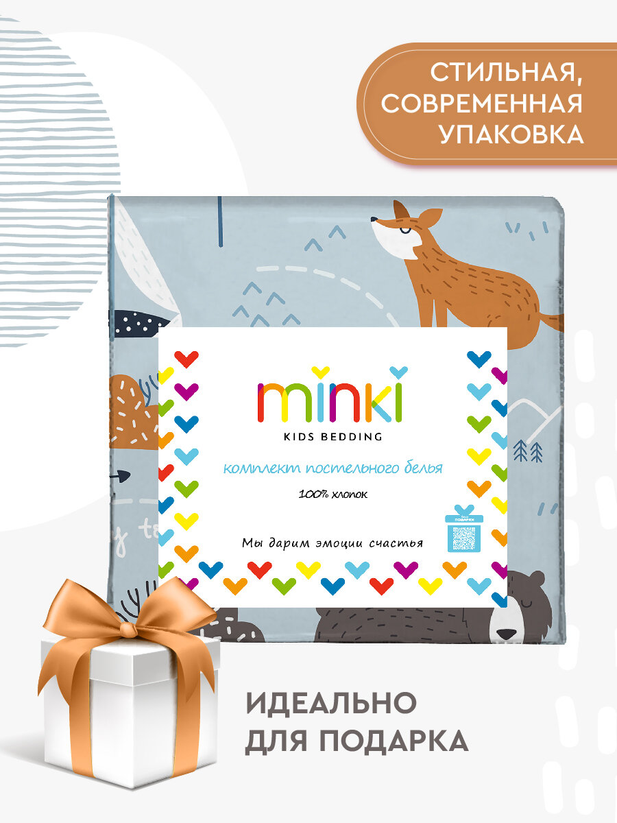 Постельное белье для детей Minki, 1,5-спальное, Перкаль, 50х70, Энимал