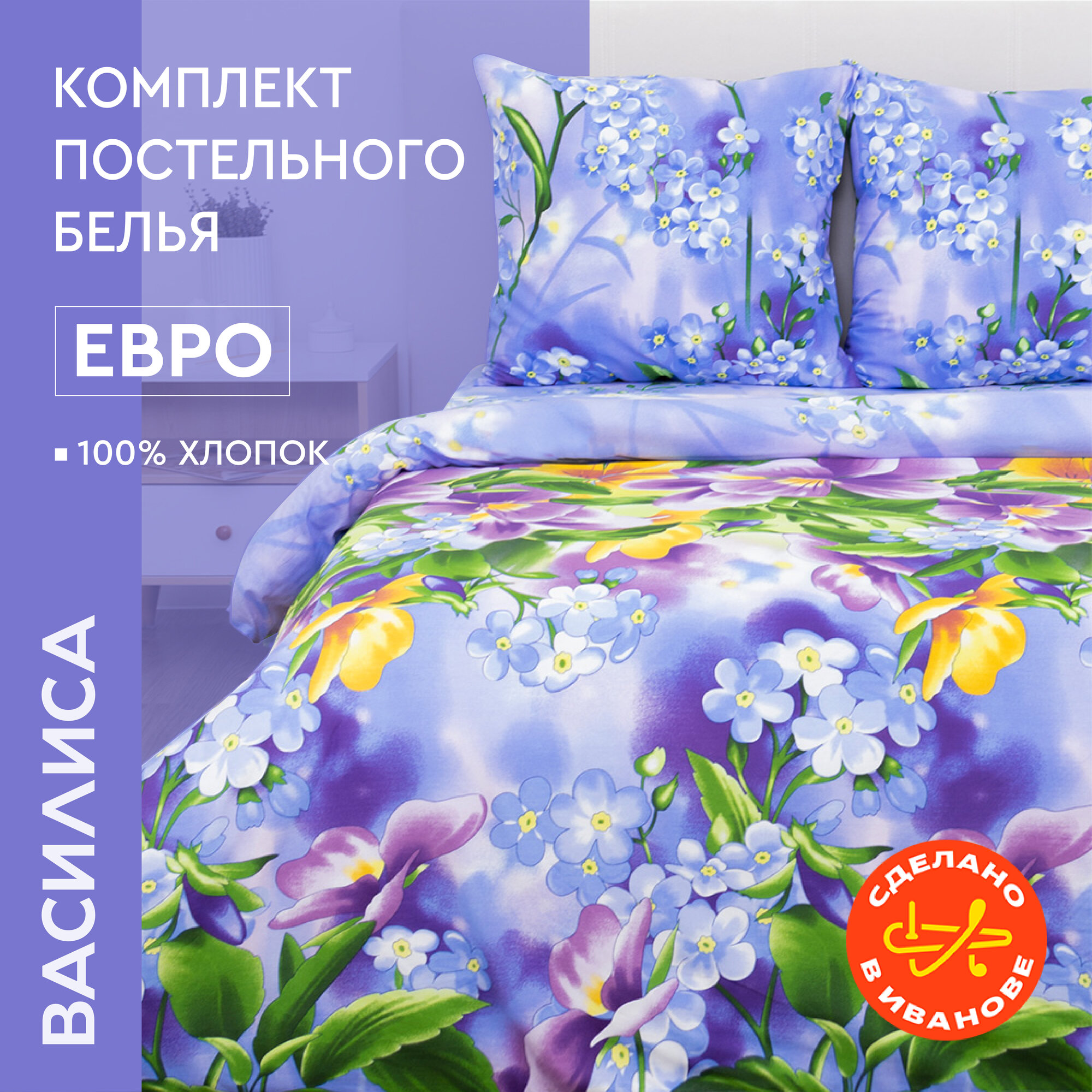 Купить Постельное белье Василиса Евро, Бязь, наволочки 70х70 см, Фиалки