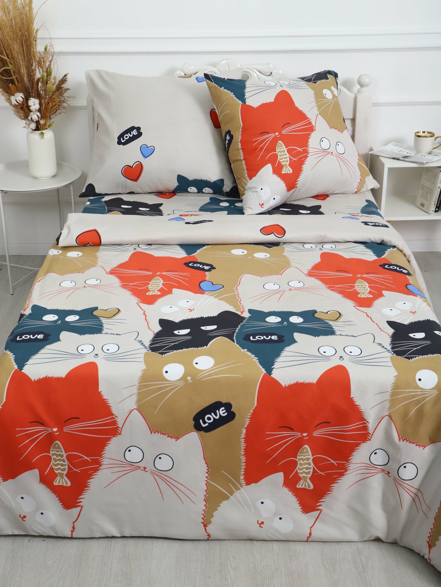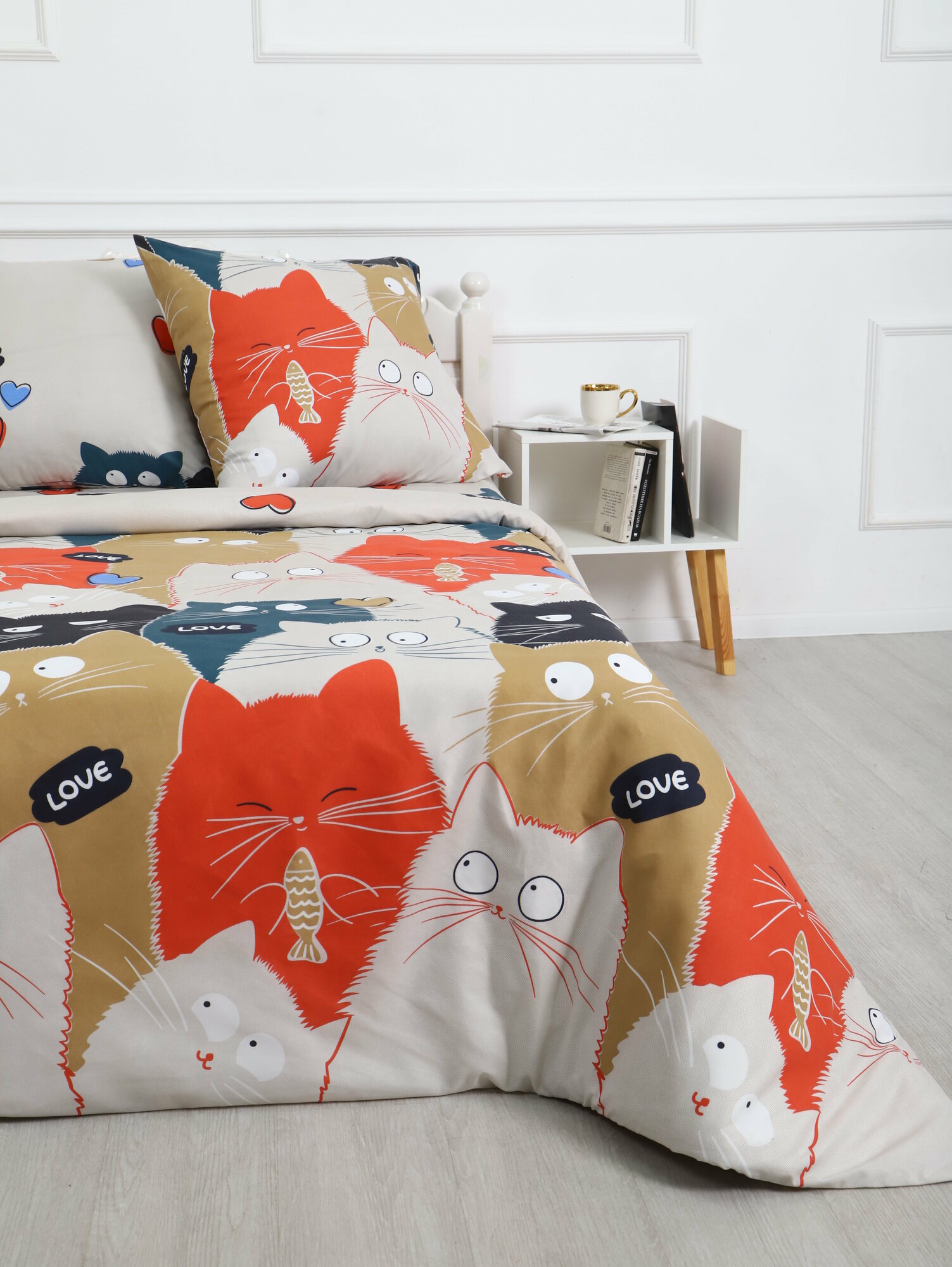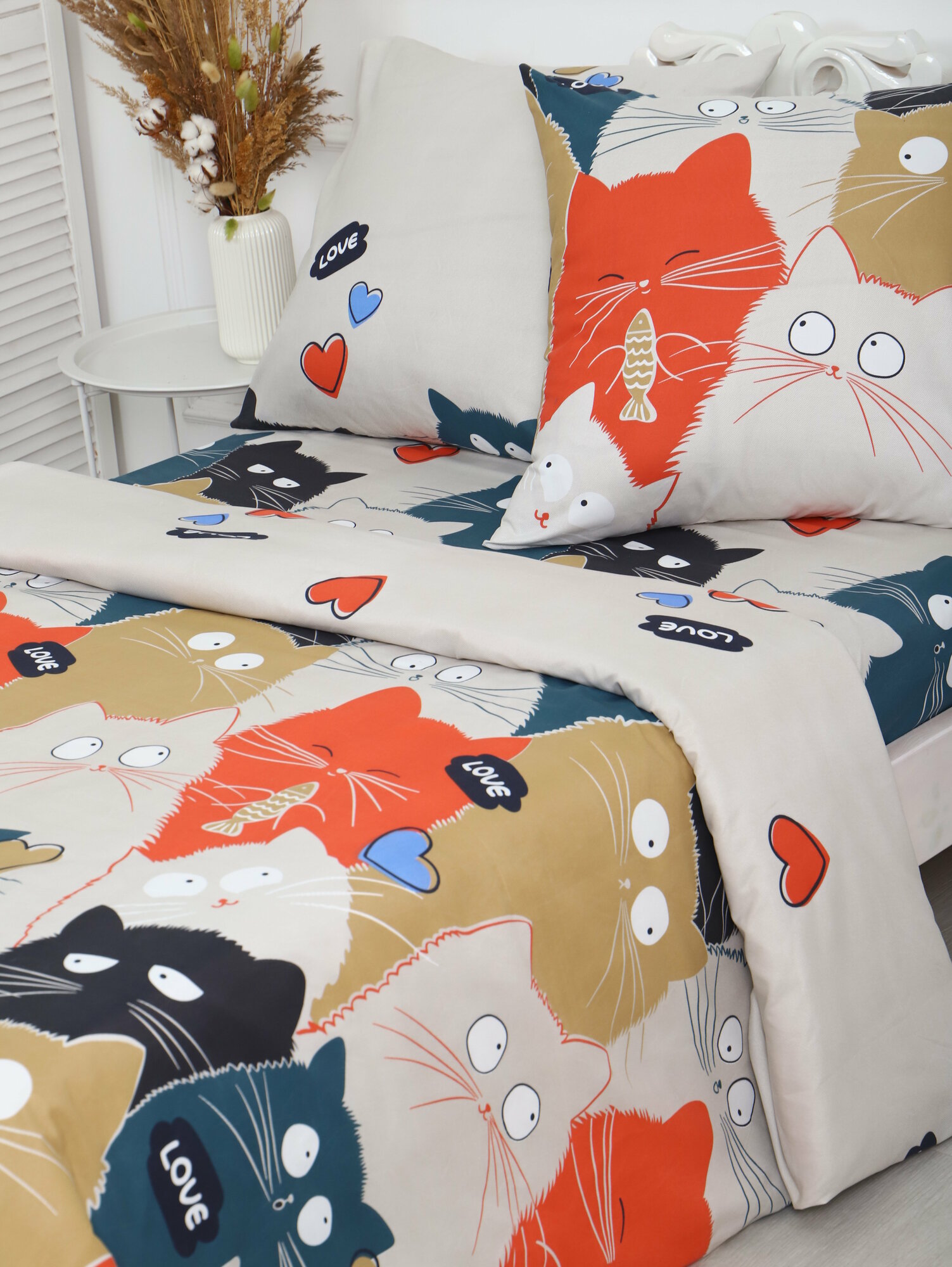 Купить Постельное белье 2 спальное, котики, Топ_Т наволочки 70х70, полисатин, 2-спальный комплект, ивановский текстиль, бежевый