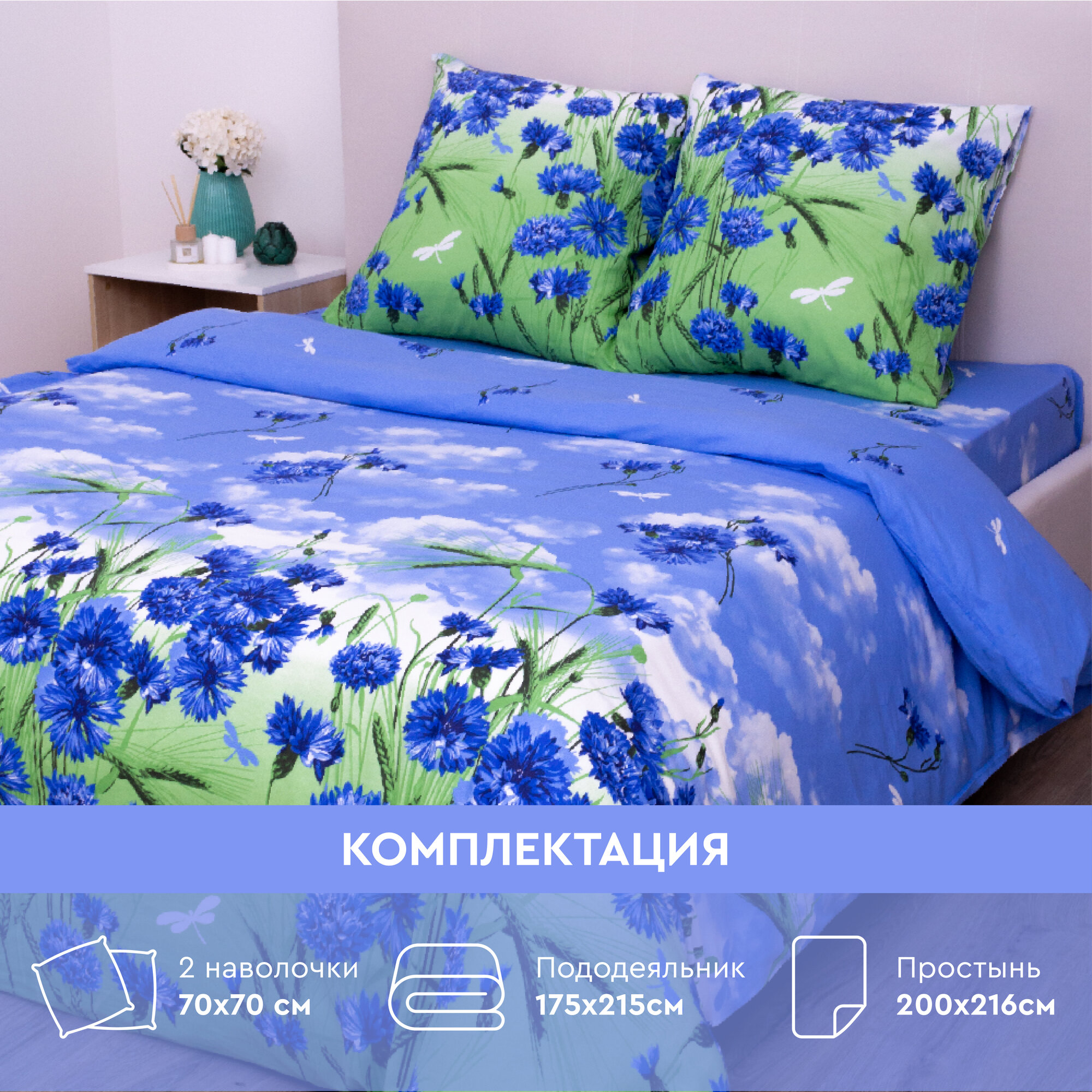 Постельное белье Василиса 1,5-спальное, Бязь, наволочки 70х70 см, Васильки