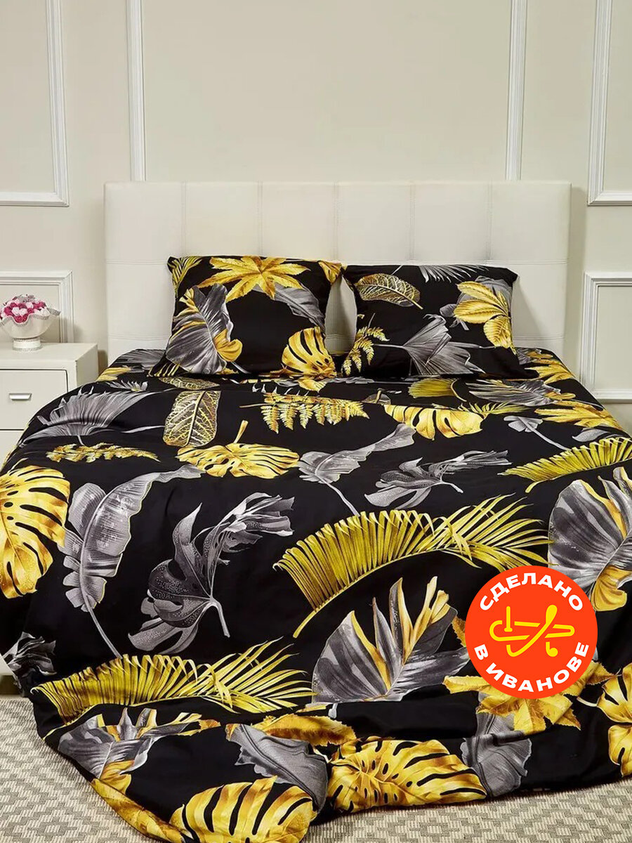Постельное белье 2 спальное, Топ_Т наволочки 70х70, полисатин, 2-спальный комплект, ивановский текстиль, черный золотистый интересное: