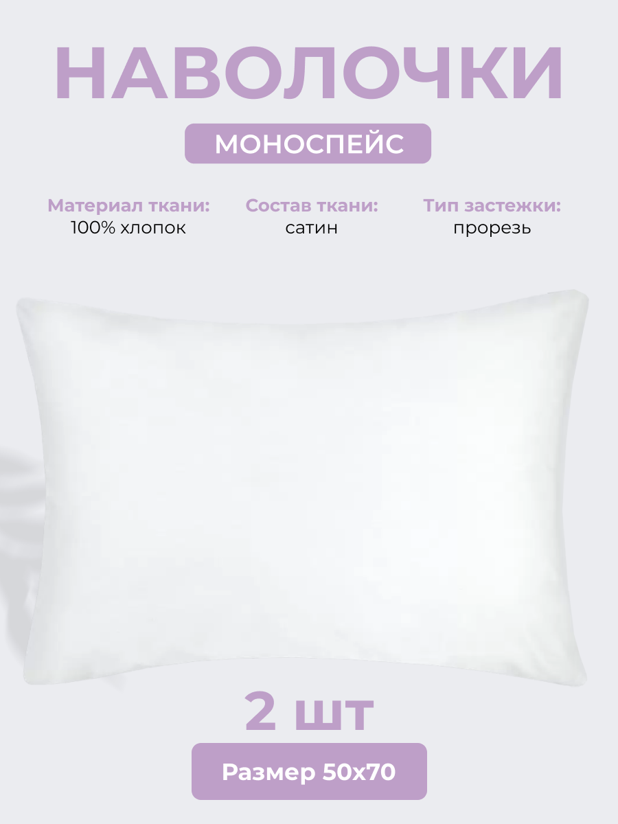 СохранитьНаволочки 50х70 см Моноспейс, комплект из 2х шт, однотонные (аналог икеа), Белый, 100% хлопок, сатин, Ecotex интересное: