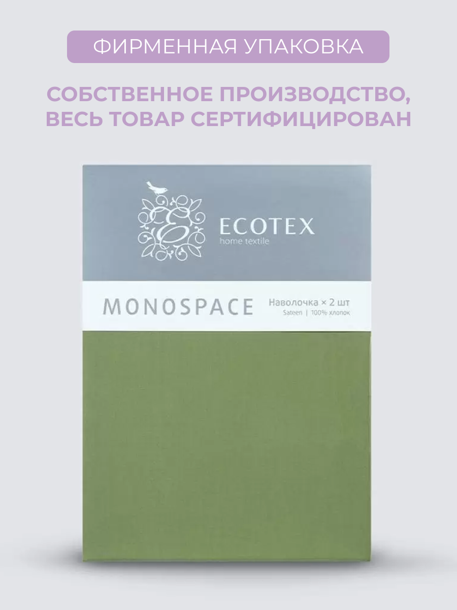 Набор наволочек 50х70 см (2шт.) "Моноспейс",сатин-100% хлопок, зеленый, Ecotex