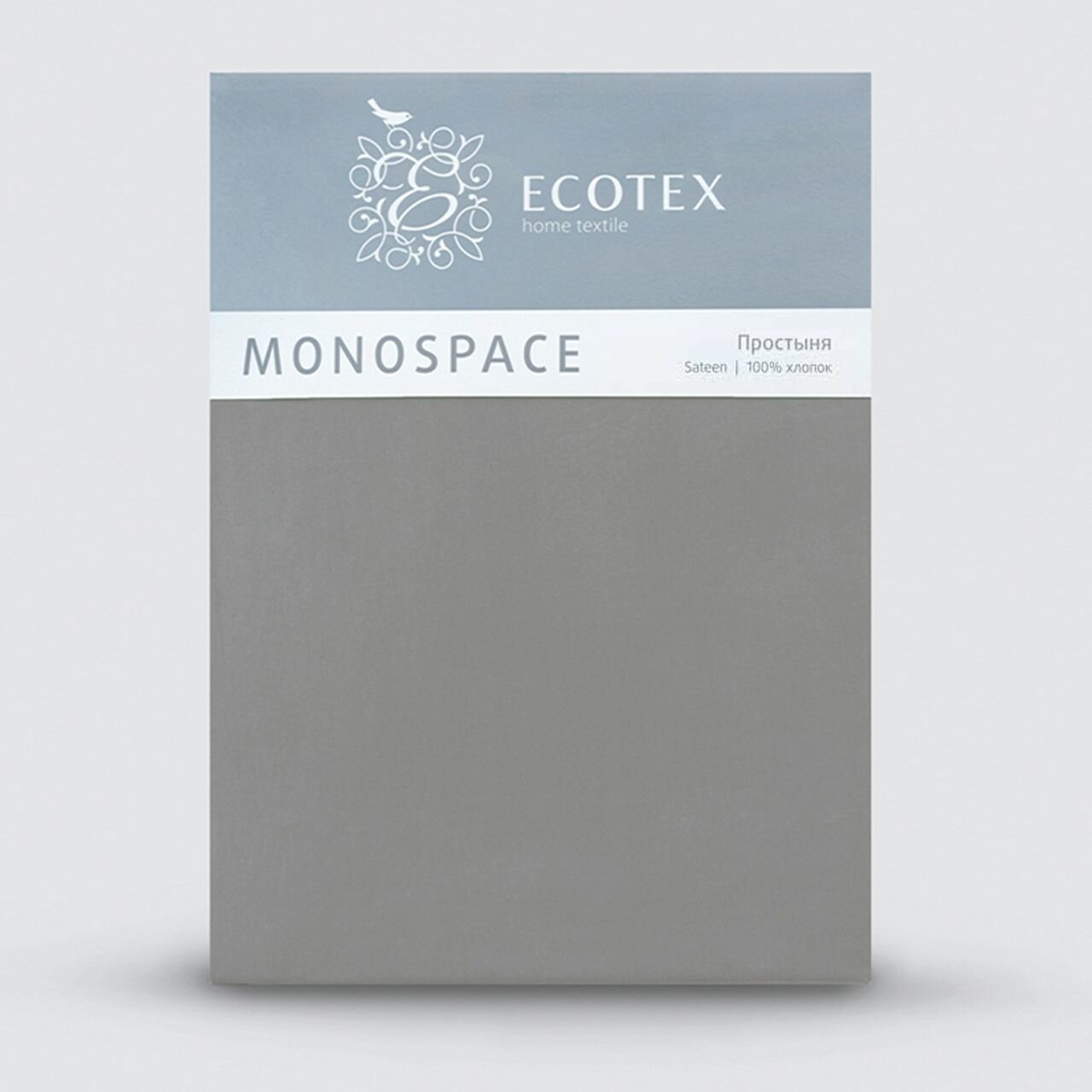 Простынь Ecotex "Моноспейс" 1,5-спальная (150х215 см), сатин - 100% хлопок, серый
