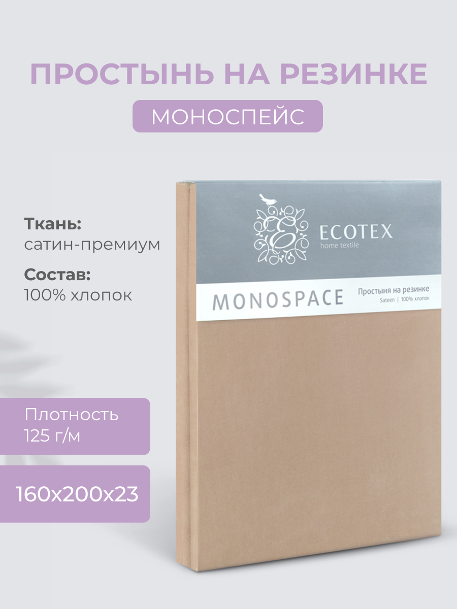 Простынь на резинке Ecotex "Моноспейс", сатин - 100% хлопок, 160х200х23 бежевый